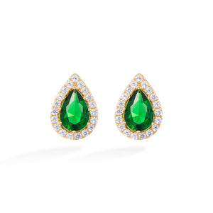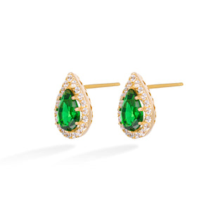 Luminous and bold, the Starlight Emerald Earrings by Xhin + Shabella are a refined nod to vintage glamour. Featuring deep green teardrop-cut stones surrounded by a sparkling halo of clear cubic zirconia, these gold-tone studs deliver high-impact brilliance in an elegant silhouette. The rich color and faceted cut evoke timeless sophistication, while the hypoallergenic, nickel-free setting ensures everyday comfort. Wear them as a statement with swept-back hair or pair them with the matching necklace for a coordinated glow.