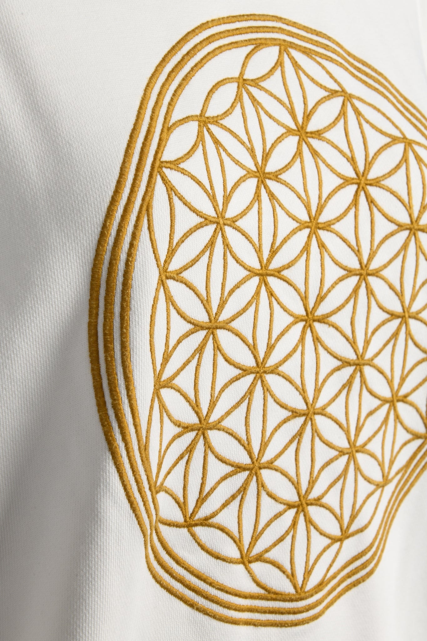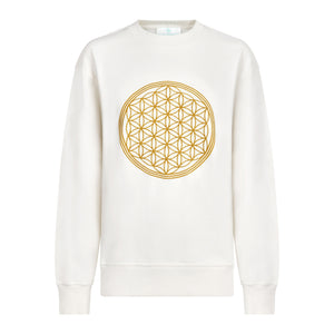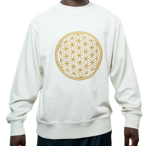 The Flower of Life Unisex Sweatshirt is crafted in Portugal from ultra-premium 400g organic cotton fleece—thick, soft, and built for lasting comfort. At the center front, a gold-colored Flower of Life symbol is delicately embroidered in biodegradable Tencel threads, while the turquoise Divine Harmonie logo adorns the back. Representing sacred geometry and universal balance, this sweatshirt supports the alignment of all chakras, offering harmony, healing, and a deep connection to the essence of life.