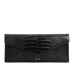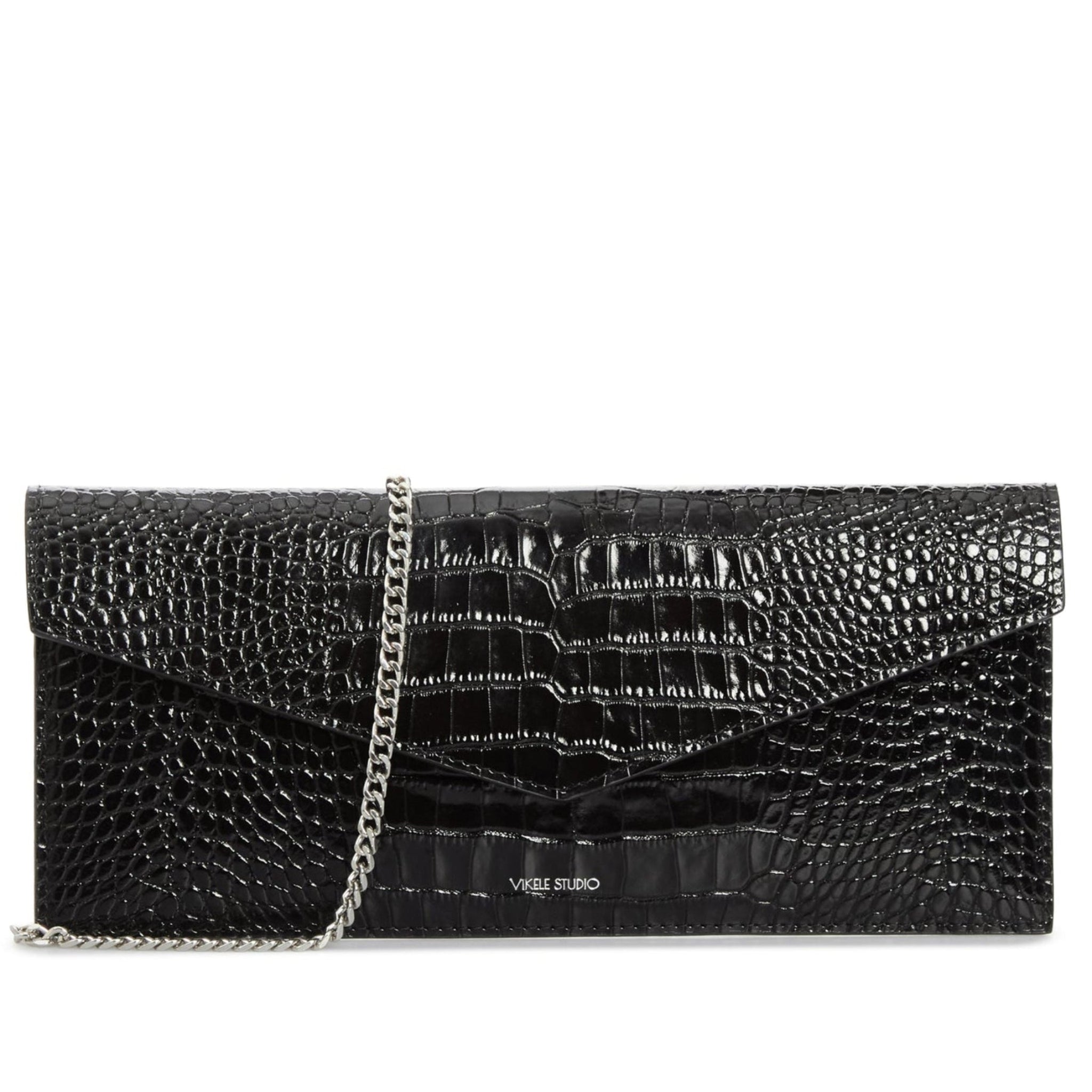 A refined and effortless Designed to dazzle with restraint, the OPERA clutch by VIKELE STUDIO is a masterclass in modern evening elegance. Crafted in Ukraine from croc-embossed black leather, its envelope silhouette is both sharp and graceful — a perfect complement to after-dark ensembles. A silver-toned chain strap adds styling versatility, allowing it to be worn crossbody or carried as a clutch. Sleek yet structured, the OPERA fits just the essentials, making it your go-to for cocktail hours, weddings, or any occasion where sophistication is non-negotiable. Limited in production, this is understated glamour with independent soul. Sly chic clutch, crafted to elevate evening ensembles with a touch of understated glamour. Its sleek silhouette and graceful proportions make it the perfect finishing touch for a sophisticated, fashion-forward look.