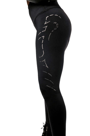 SELL WITH USUnapologetically bold, the Queen Cobra Leggings by 2Dannu fuse performance and power into a sleek, sculpted silhouette. Part of the brand's Genesis collection, these black leggings feature a raised metallic gray cobra embroidered along the left leg - an emblem of stealth, strategy, and inner discipline. Cut from a supportive nylon-spandex blend, they offer second-skin comfort with a contouring high-rise fit made to move with you - from gym reps to city errands. The cobra design channels a quiet strength, making these leggings more than just activewear; they’re a statement of intent. Wear them solo with a crop top for high-impact workouts or pair with oversized layers for an off-duty streetwear edge. Designed for those who strike with precision - and style.