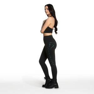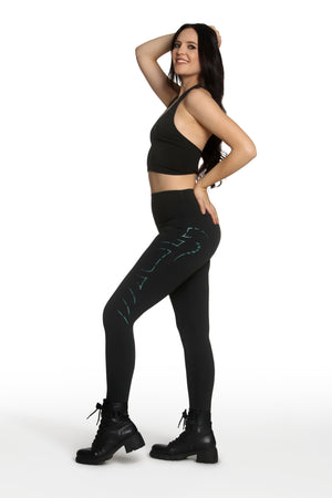 SELL WITH USCommand attention in silence. The Queen Cobra Leggings in Teal Green by 2Dannu are part of the Genesis collection - a tribute to the goddess of stealth and precision. These high-waisted leggings are crafted from a sculpting nylon-spandex blend that hugs the body with a sleek, second-skin feel. The left leg features a teal green cobra design applied via heat press, offering a smooth, sheer finish that catches the light with every move. Designed for those who operate solo, speak little, and strike with intent, this piece bridges performance with street-level attitude. Whether powering through a workout or styling them with oversized layers for off-duty days, these leggings prove that quiet strength is the boldest statement.