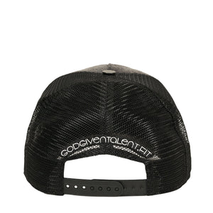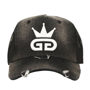 Edgy and effortlessly cool, this 100% acid wash distressed black denim mesh snapback combines vintage vibes with modern street style. Featuring durable polyester side and rear panels for breathability, it’s finished with a bold white God Given Talent logo for standout contrast. Retro-style adjustable snapback ensures a perfect fit every time.