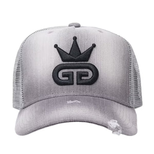 Effortlessly cool and vintage-inspired, this 100% acid wash distressed grey denim mesh snapback blends rugged texture with street-ready style. Featuring sturdy polyester side and rear panels for breathability, it’s finished with a bold black God Given Talent logo for sharp contrast. Retro-style adjustable snapback offers a custom fit.
