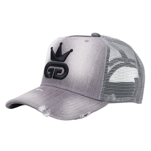 Acid Wash Distressed Grey Denim Mesh Hat | DOORS NYC