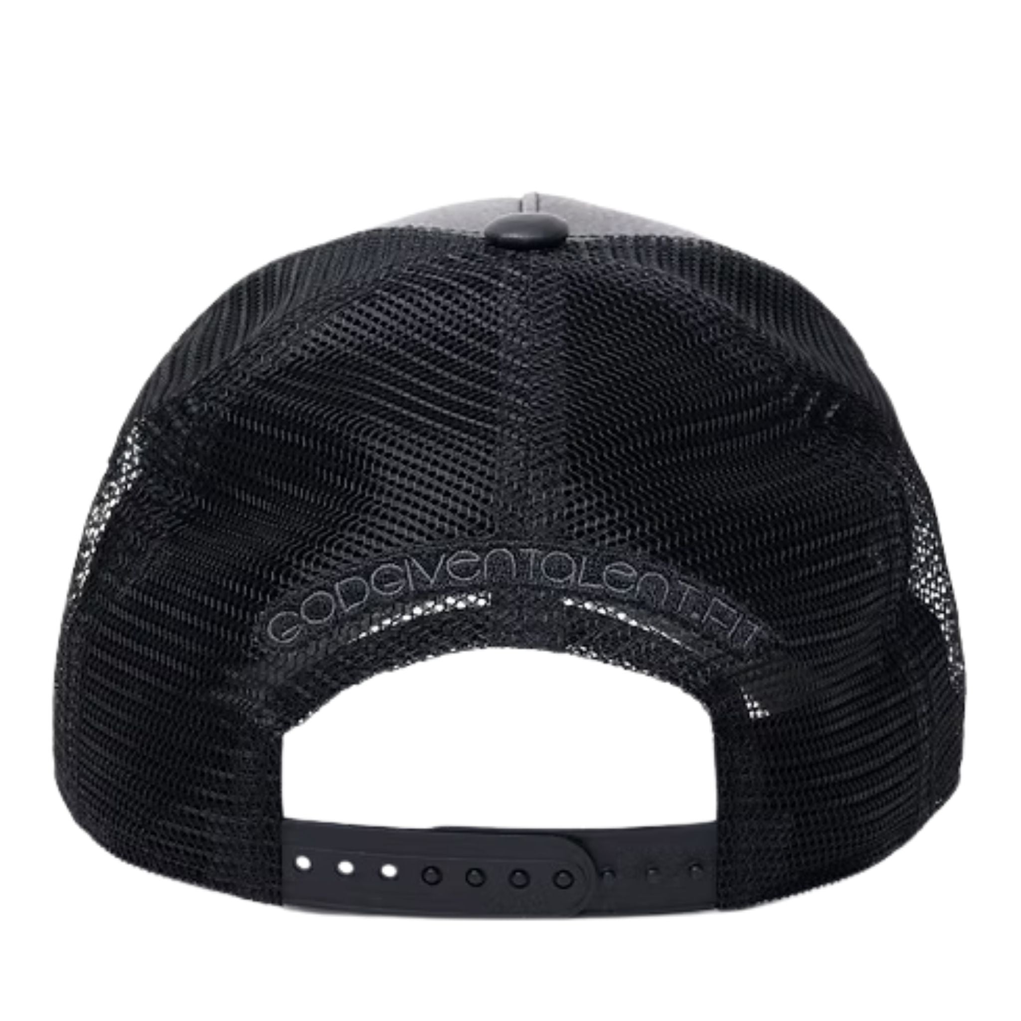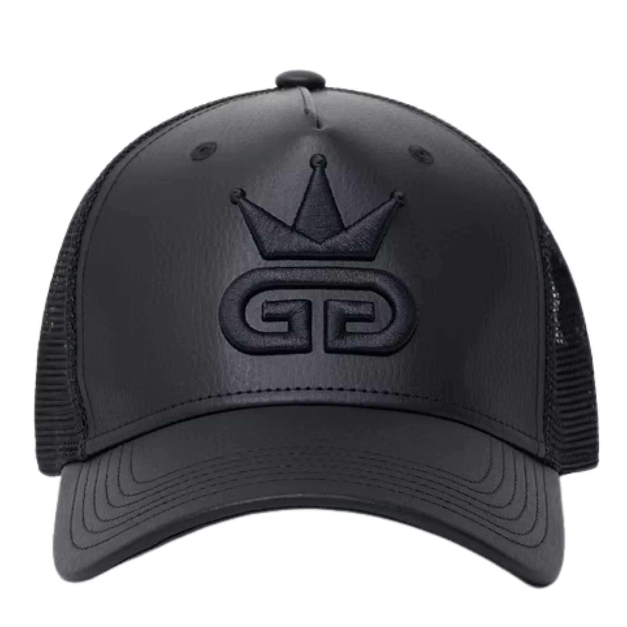 Understated luxury meets bold presence in this 100% all-black vegan leather snapback. Crafted with sleek, premium vegan leather at the front and complemented by durable polyester side and rear panels for breathable structure, this piece balances sophistication with everyday wearability. Finished with an all-black God Given Talent logo for a powerful tonal statement, it delivers depth without distraction. A retro-style adjustable snapback ensures a comfortable, tailored fit every time.