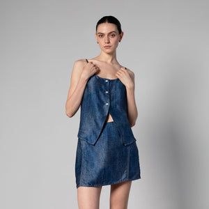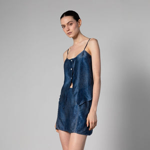 Dark Denim Wash Silk Camisole with Cut-Out Drape