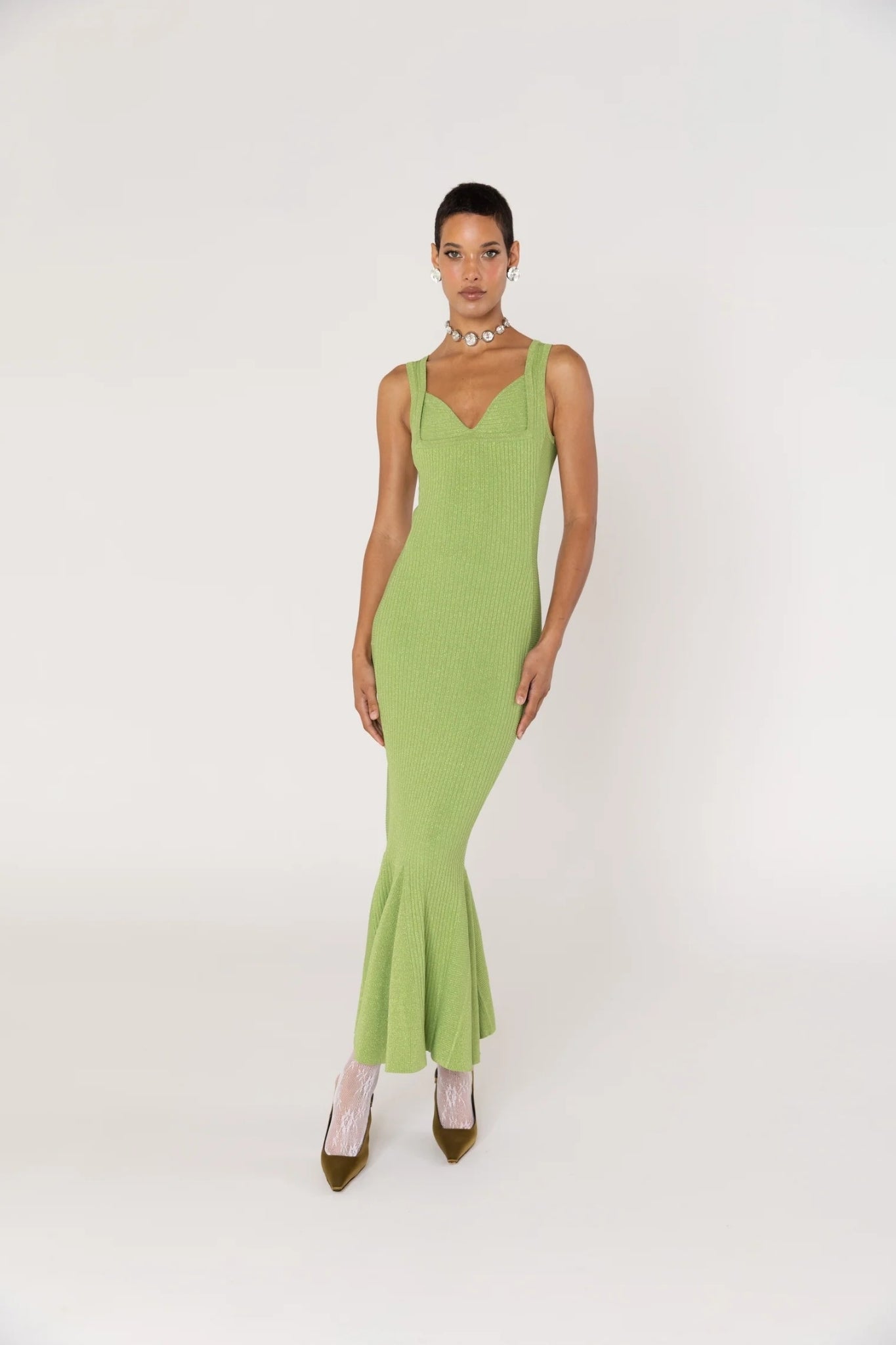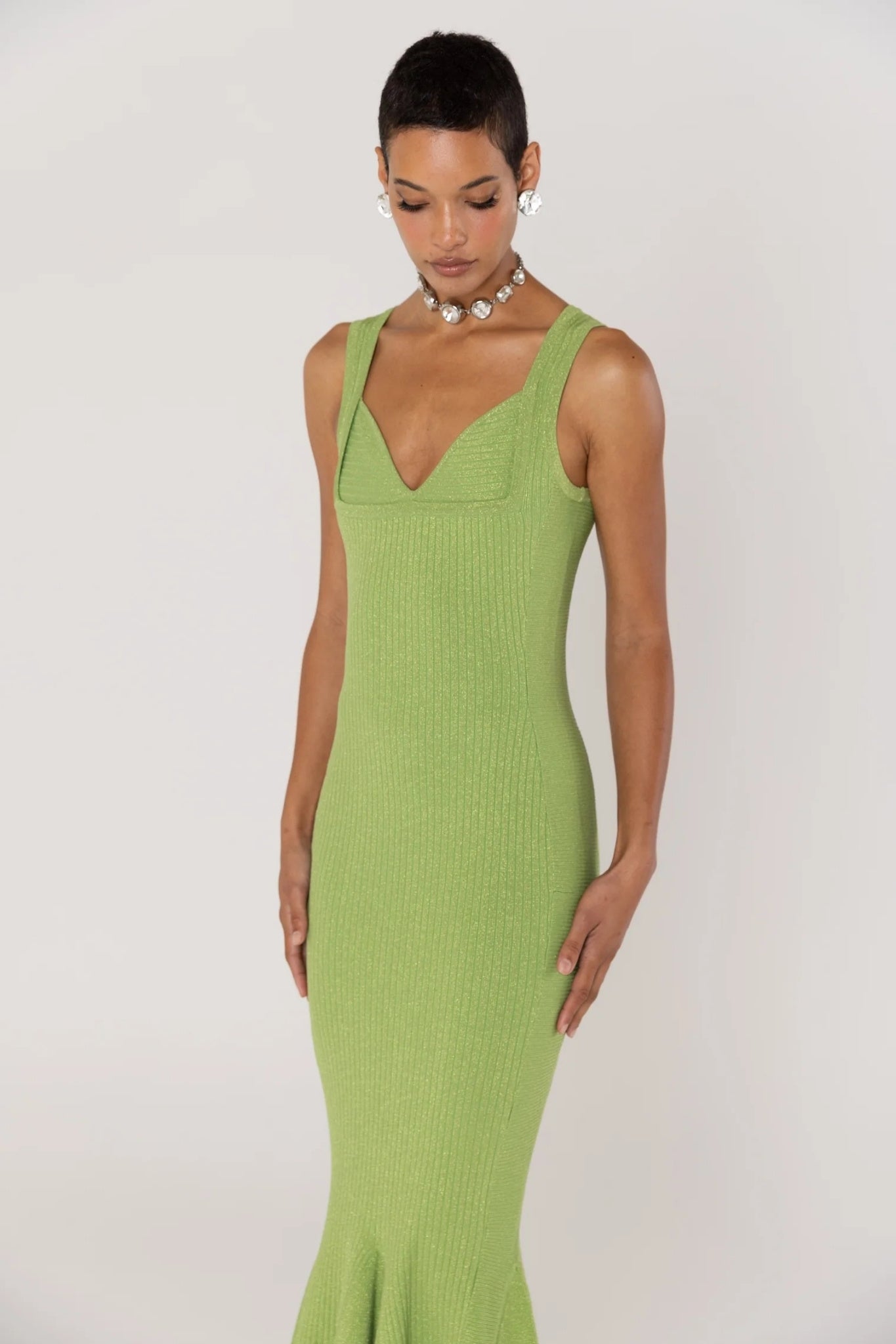 Step into the spotlight with the Green Metallic Knit Dress. Its shimmering knit fabric catches the light just right, making you glow all evening long. Comfortable and chic, this dress is perfect for turning heads and dancing through the night in effortless style. Ready to shine? This dress is your new best friend for golden moments.