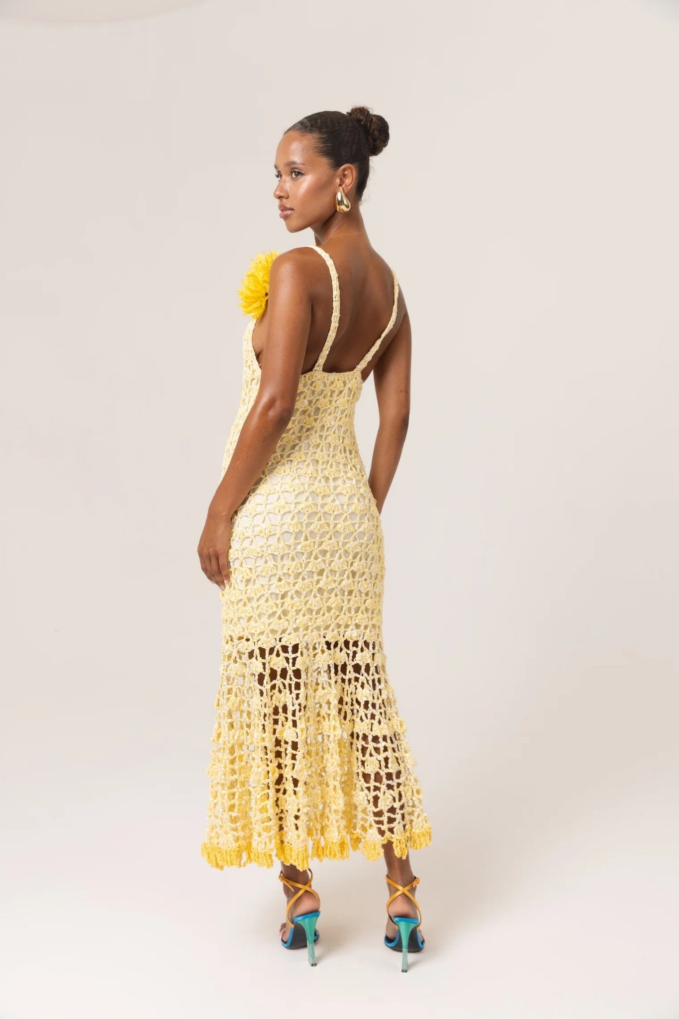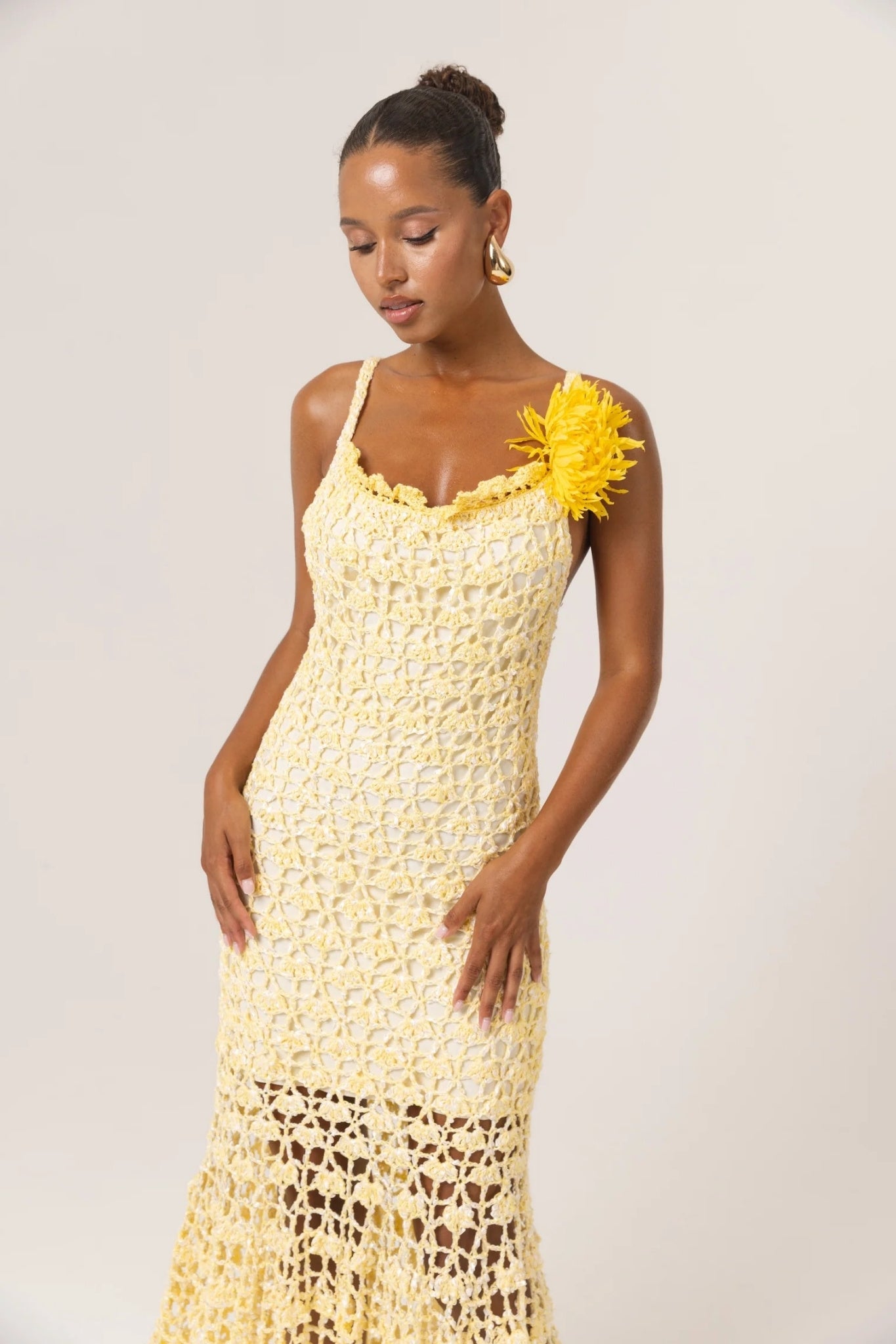 Step into sunshine with the Butter Yellow Chrysanthemum Midi Handmade Crochet Dress, designed to brighten your day and elevate your style. This playful piece features an open back that adds flirty charm and a round neckline that keeps it sweet and simple. Each stitch is carefully handcrafted, highlighting the intricate knit details that make this dress uniquely yours. The midi length strikes the perfect balance between elegance and fun, making it ideal for special occasions where you want to stand out. Embrace a feminine silhouette that feels as joyful as a summer breeze.