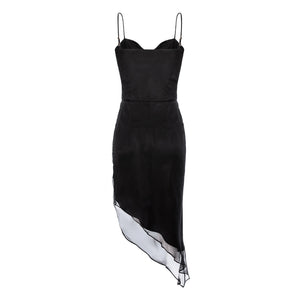 SELL WITH USElegant, refined, and effortlessly versatile, this Black Asymmetric Silk Midi Dress by AVENUE No.29 combines luxurious silk with modern design details. Crafted in the EU by an independent atelier, it features adjustable delicate straps, subtle side gathering, and an asymmetric slip-style silhouette that flatters the waist and elongates the figure.