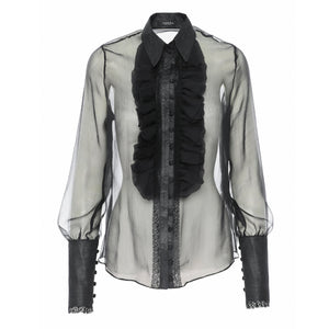 AVENUE NO.29 - Black Ruffle Silk Shirt | DOORS NYC