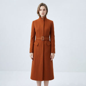 Timeless, elegant, and practical, this Brown Wool Blend Midi Coat by AVENUE No.29 combines refined tailoring with functional design. Crafted from a premium wool blend, it features a straight cut and matching belt that define a sophisticated silhouette, while discreet fastening ensures a clean, minimalist look.