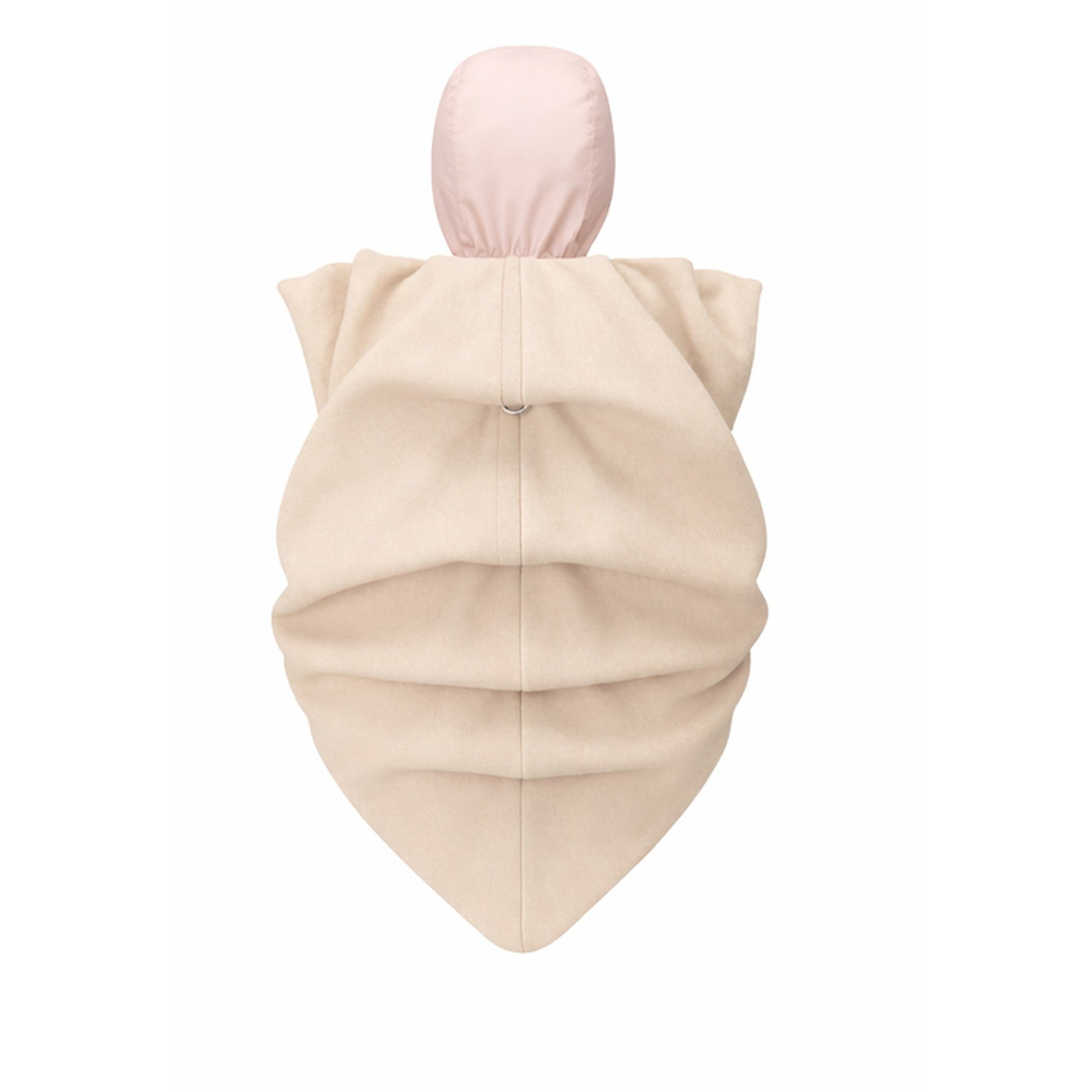 Merging architectural form with sculptural texture, MASHAT’s “Mythogenesis” Vest reinvents outerwear through an avant-garde lens. This beige wool-blend piece is distinguished by its wavy ruching at the back, asymmetric draping, and curved hem. The loose-fit silhouette and round neckline balance softness and strength, while vintage button closures at the front and back add a touch of nostalgia to its futuristic form. Hidden beneath the folds lies a concealed water-repellent hood, equipped with silver-tone hardware and bungee-style drawstrings — a practical secret that elevates its versatility.