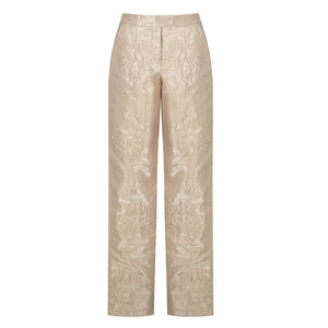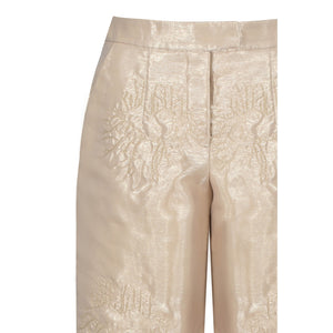 MASHAT - Beige Padded Organza Straight Pants with Quilted Lips | DOORS NYC