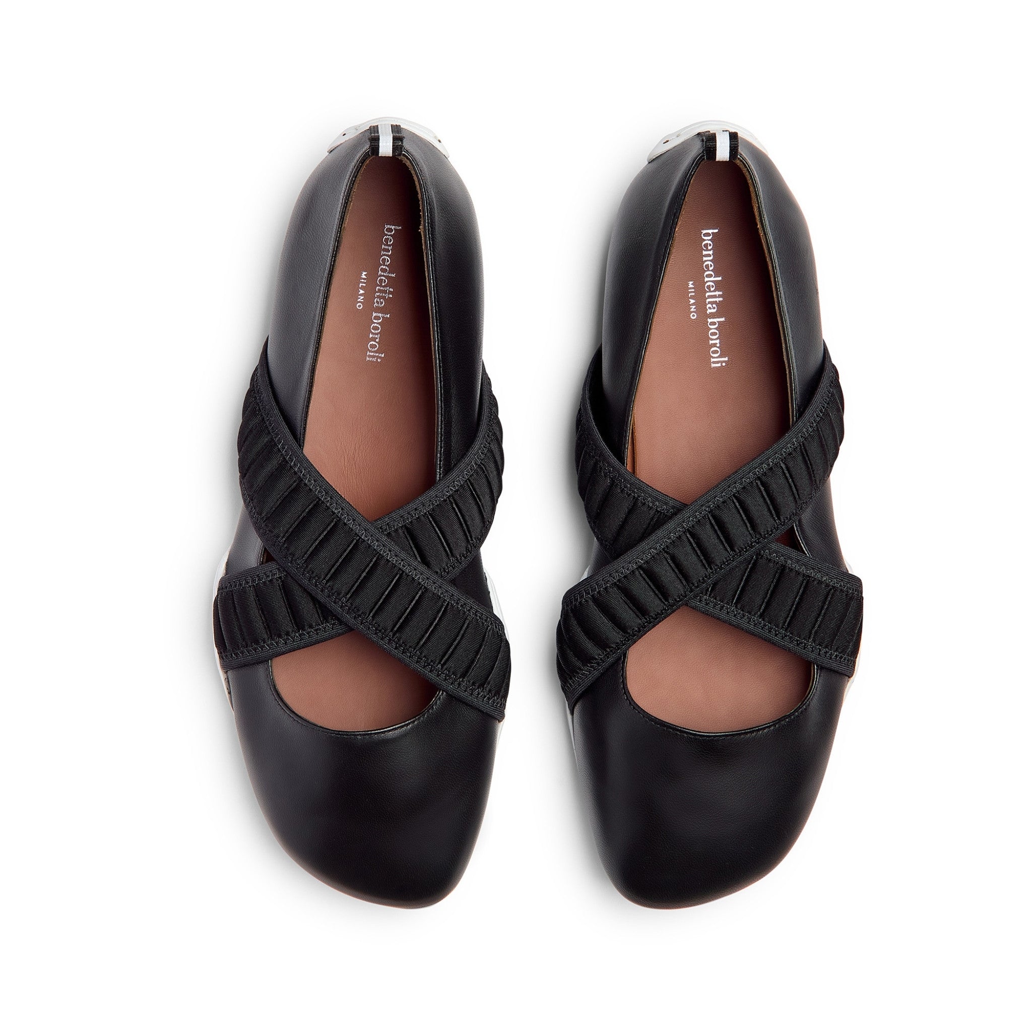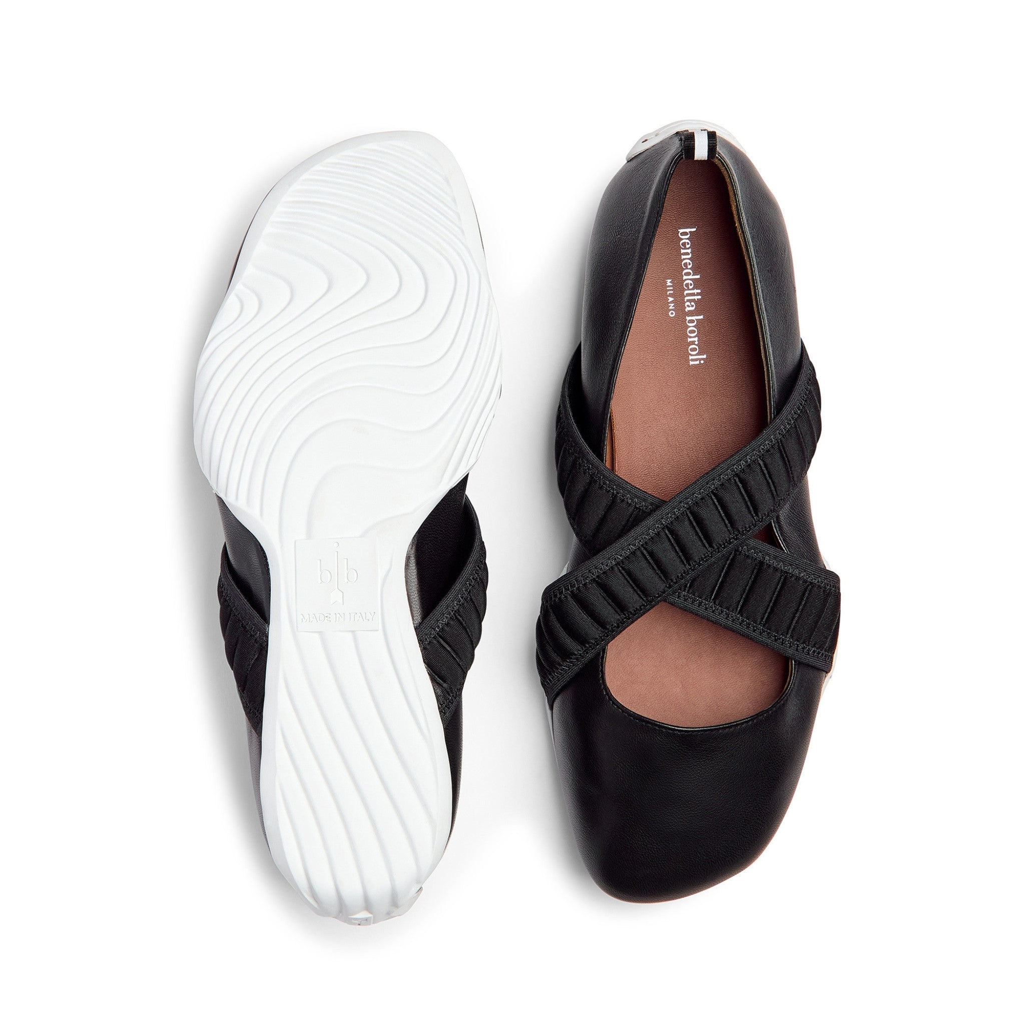 SELL WITH USThe Bianca sneaker in black nappa features two black neoprene straps that cross over the foot, providing support, comfort, and a modern graphic appeal, while the angled toe follows the natural shape of the foot for optimal fit and wearability. The BB wavy outsole, designed specifically for this model, incorporates a 2 cm internal heel for added support and lift. Details such as the nappa insole and rear loop make this shoe versatile and refined, perfect for both casual and more sophisticated looks.