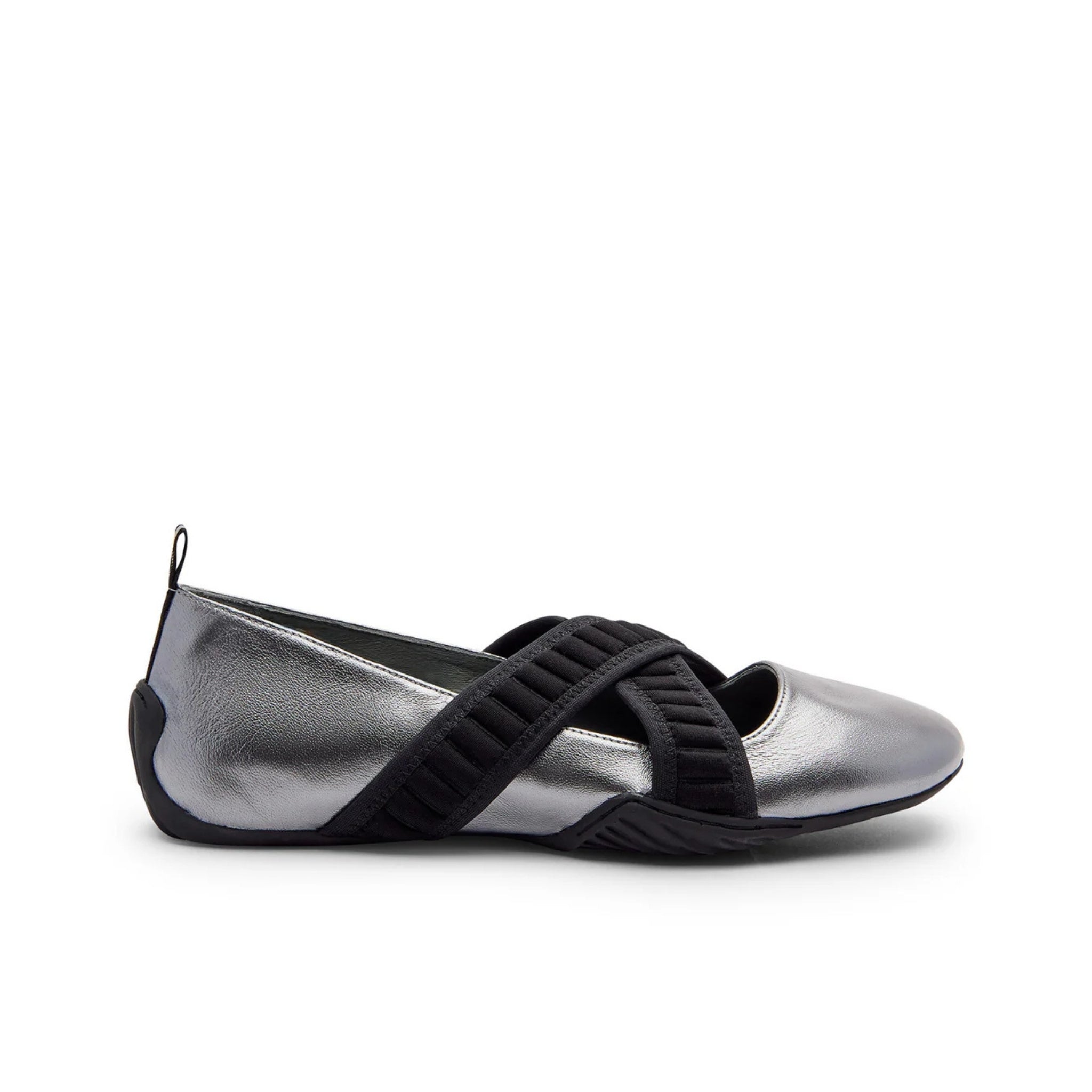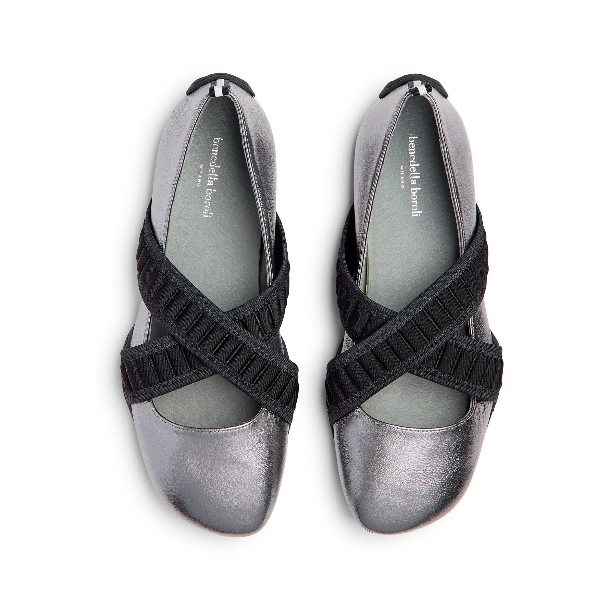 SELL WITH USThe Bianca sneaker in laminated nappa iron features two black neoprene straps that cross over the foot, providing support, comfort, and a modern graphic appeal, while the angled toe follows the natural shape of the foot for optimal fit and wearability. The BB wavy outsole, designed specifically for this model, incorporates a 2 cm internal heel for added support and lift. Details such as the nappa insole and rear loop make this shoe versatile and refined, perfect for both casual and more sophisticated looks.