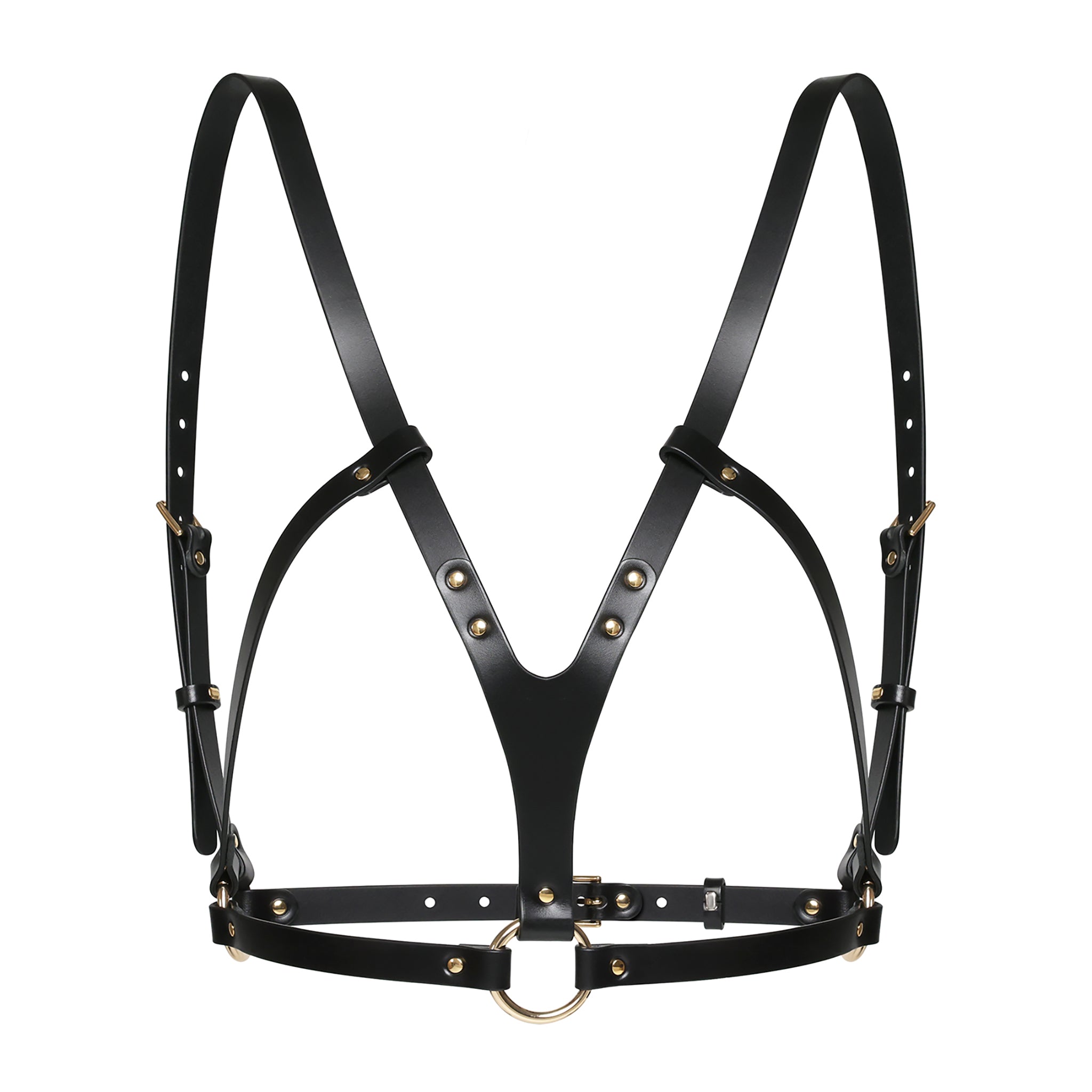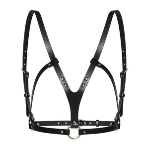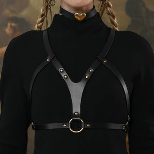 The Elara Leather Body Harness is a statement piece that blends structure with elegance. Designed to frame the bust with precision, it features slidable straps around the bust, while the intersecting back straps allow for personalised adjustment.