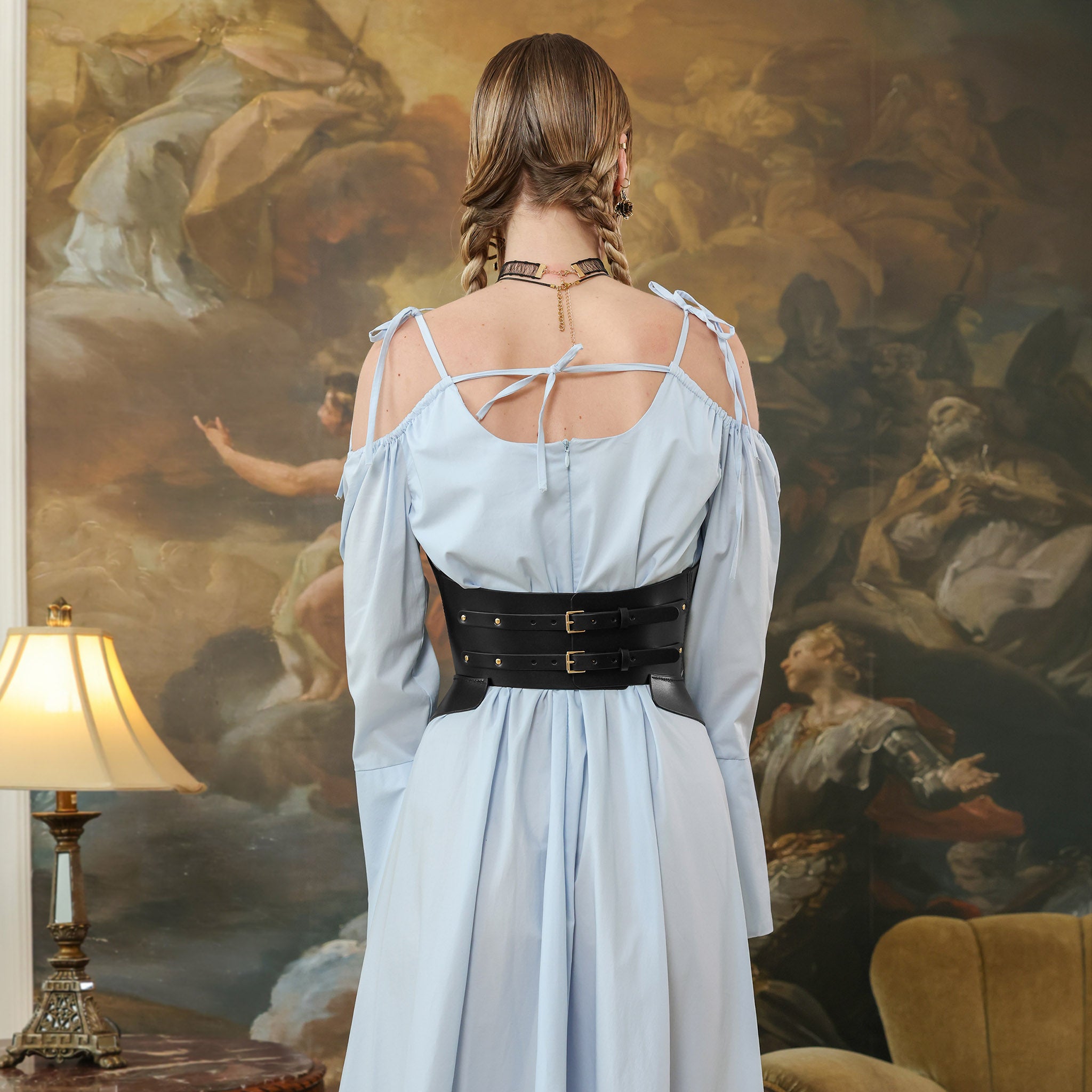 The design is clean and considered, fastening at the back with two slim buckled straps that lend a subtle accent to the minimalist construction. With its balance of structure and fluidity, the corset brings a quiet strength to any look—modern, refined, and effortlessly composed.