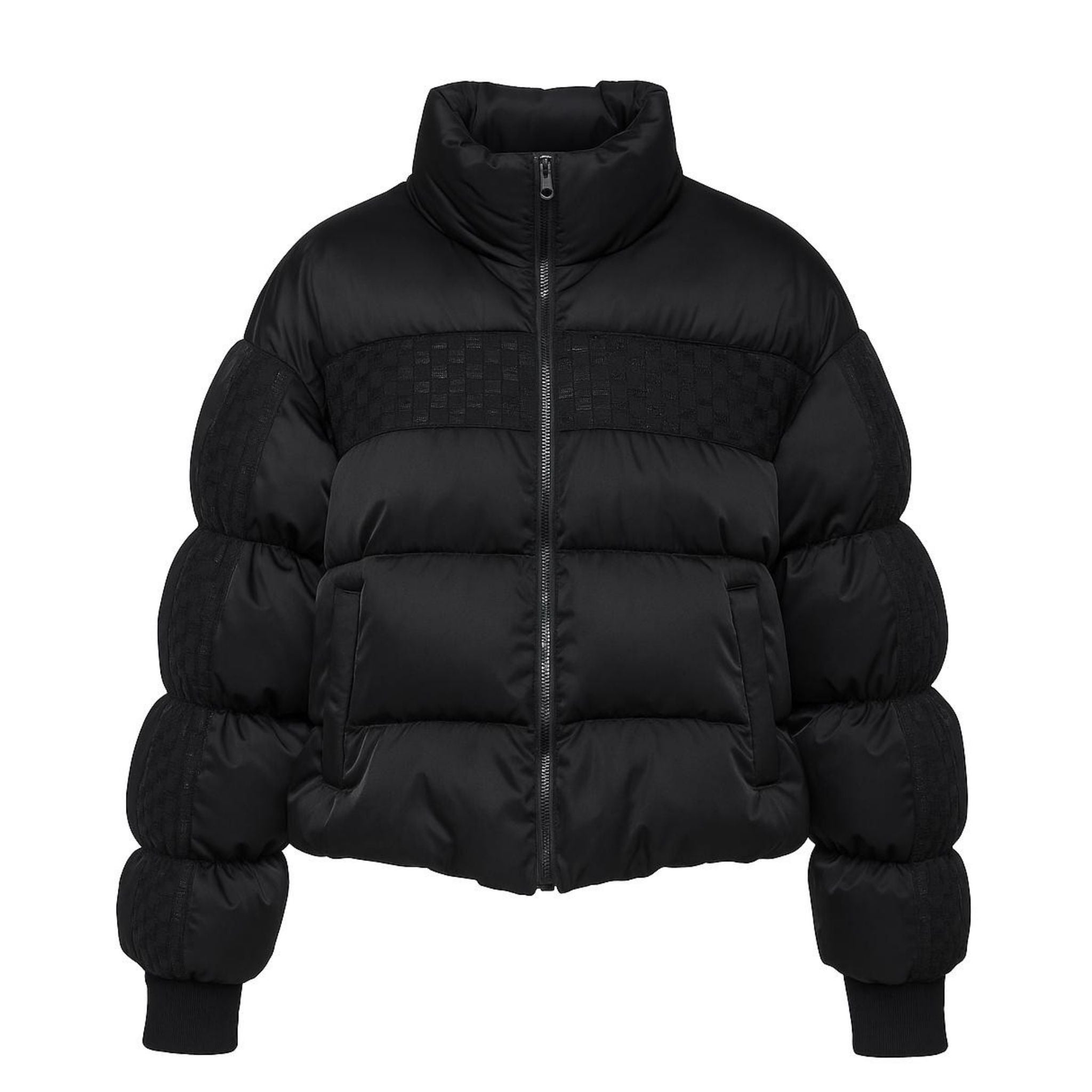 The LIGHTNING Puffer Coat byHouse of Nova is a study in contrasts — sleek, glossy outerwear punctuated by sculptural knit quilting. With controlled volume and architectural precision, this limited-edition silhouette commands attention in winter white. Ribbed knit inserts trace the arms and chest, adding visual texture and tactile warmth. A detachable collar panel adds dramatic edge, while the puffed form offers full insulation without heaviness. Wear it over monochrome layers for max impact.
