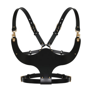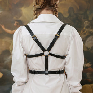 Handcrafted from smooth Italian leather, the Sariah Leather Harness combines a sculpted underbust line with adjustable shoulder straps for a bold yet refined fit. Sleek hardware accents lend a polished edge, balancing structure with sophistication.