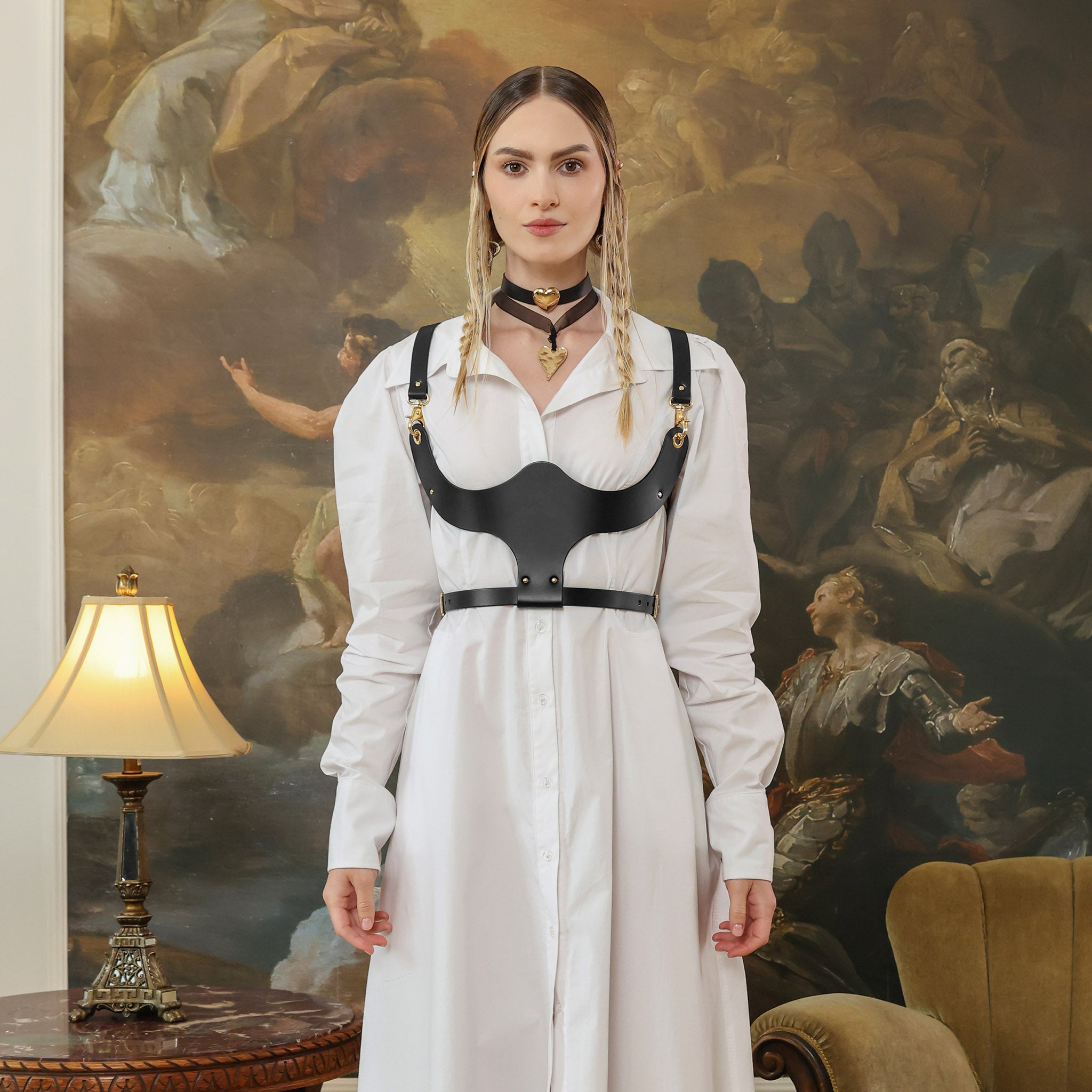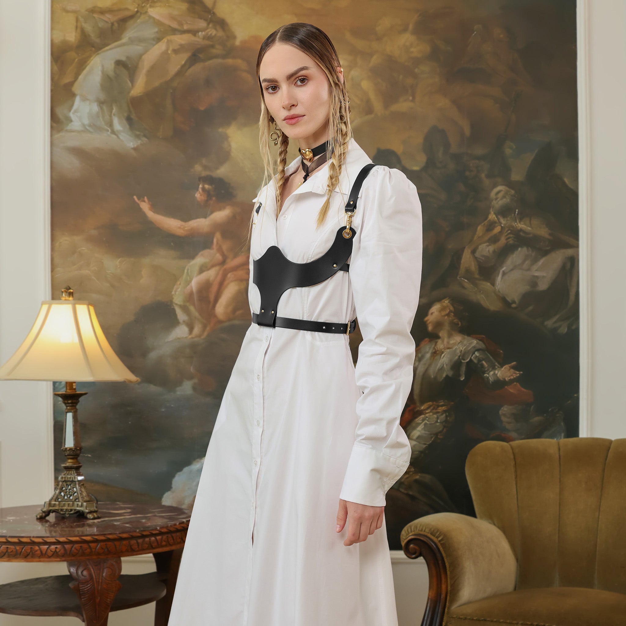 With its open design, the Saria Harness is perfect for layering over shirts, dresses, or jumpsuits. A statement accessory, it transforms any outfit with confidence and modern style.
