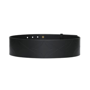 The Striv Waist Leather Belt offers a clean, architectural accent to the waist, defined by its smooth black leather and subtle embossed geometric pattern. Its structured design cinches the silhouette, adding definition while maintaining a minimalist elegance.