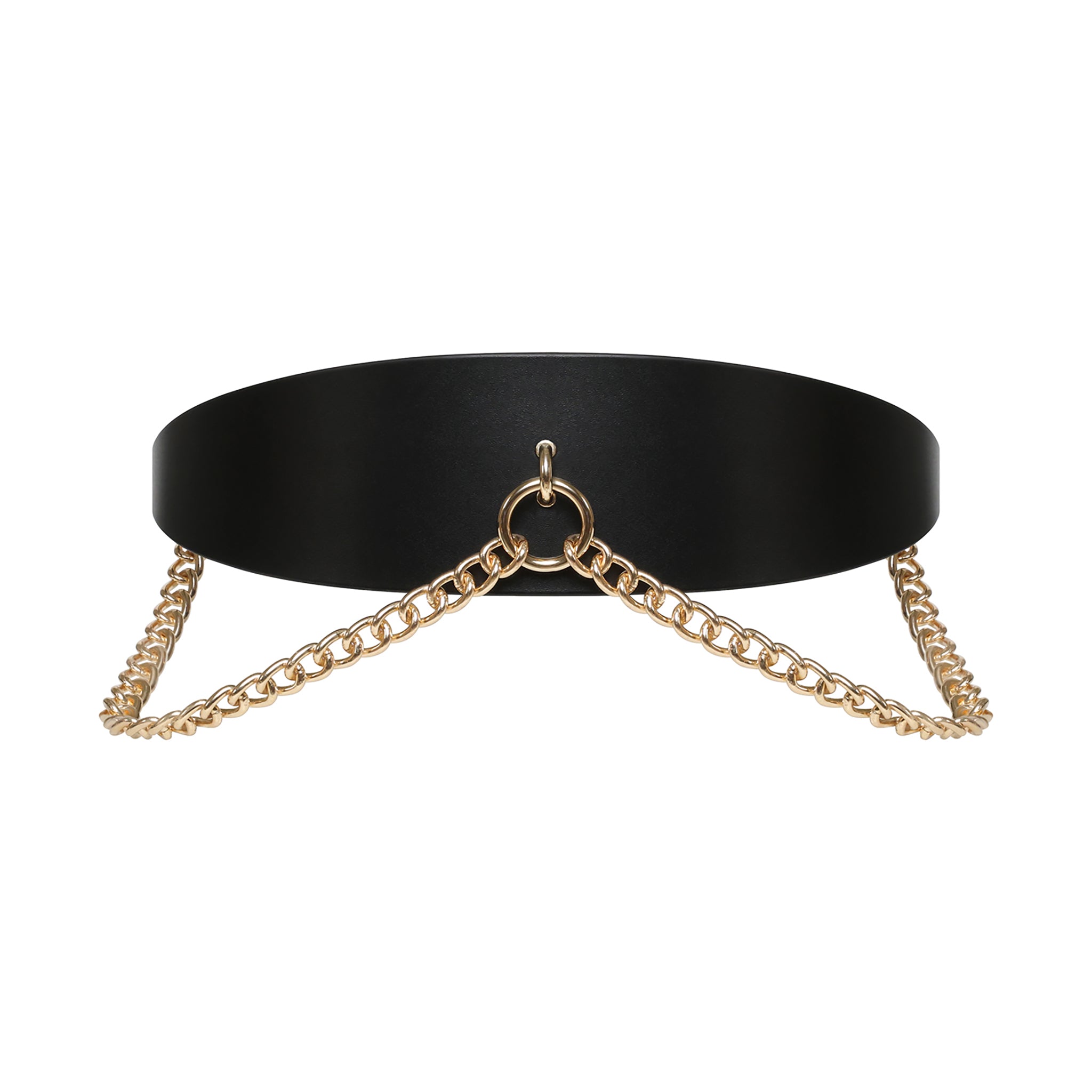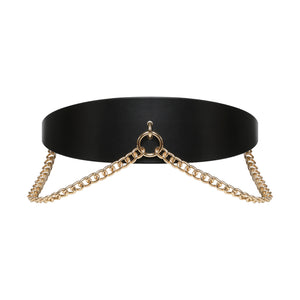 The Thalia Leather Chain Belt blends a wide, structured leather band with an elegant gold chain detail, creating a statement accessory that adds definition and sophistication to any outfit.