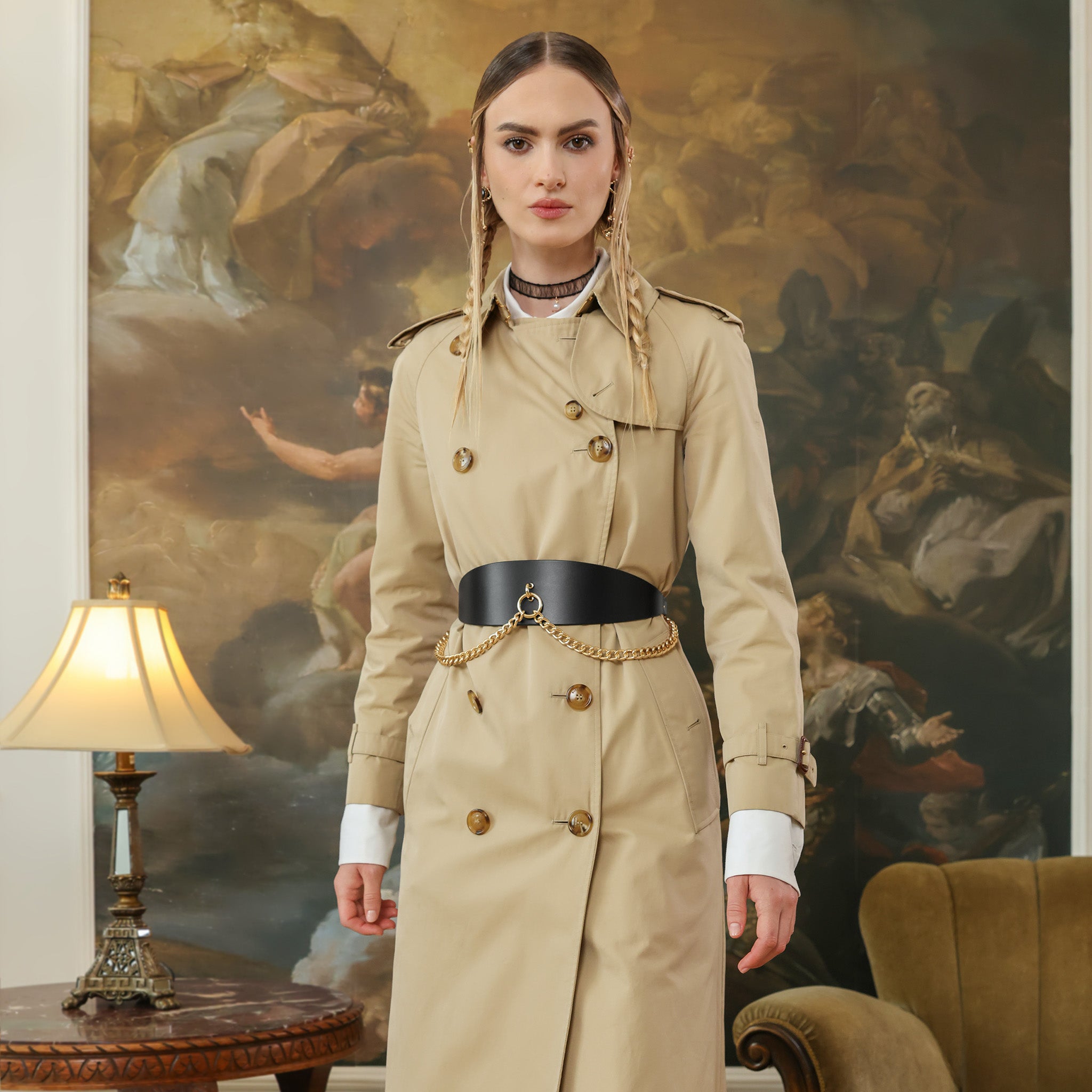 Its adjustable back straps ensure a perfect fit, while the chain introduces a touch of movement and shine. This versatile piece can be worn over coats, dresses, or blazers to cinch the waist and elevate both casual and formal looks.