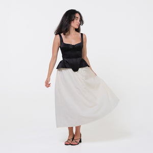 SELL WITH USA sculpted black corset with defined cups and contoured side panels that accentuate the waist. Featuring a visible back zipper, this piece combines structured tailoring with a bold, statement-making silhouette.