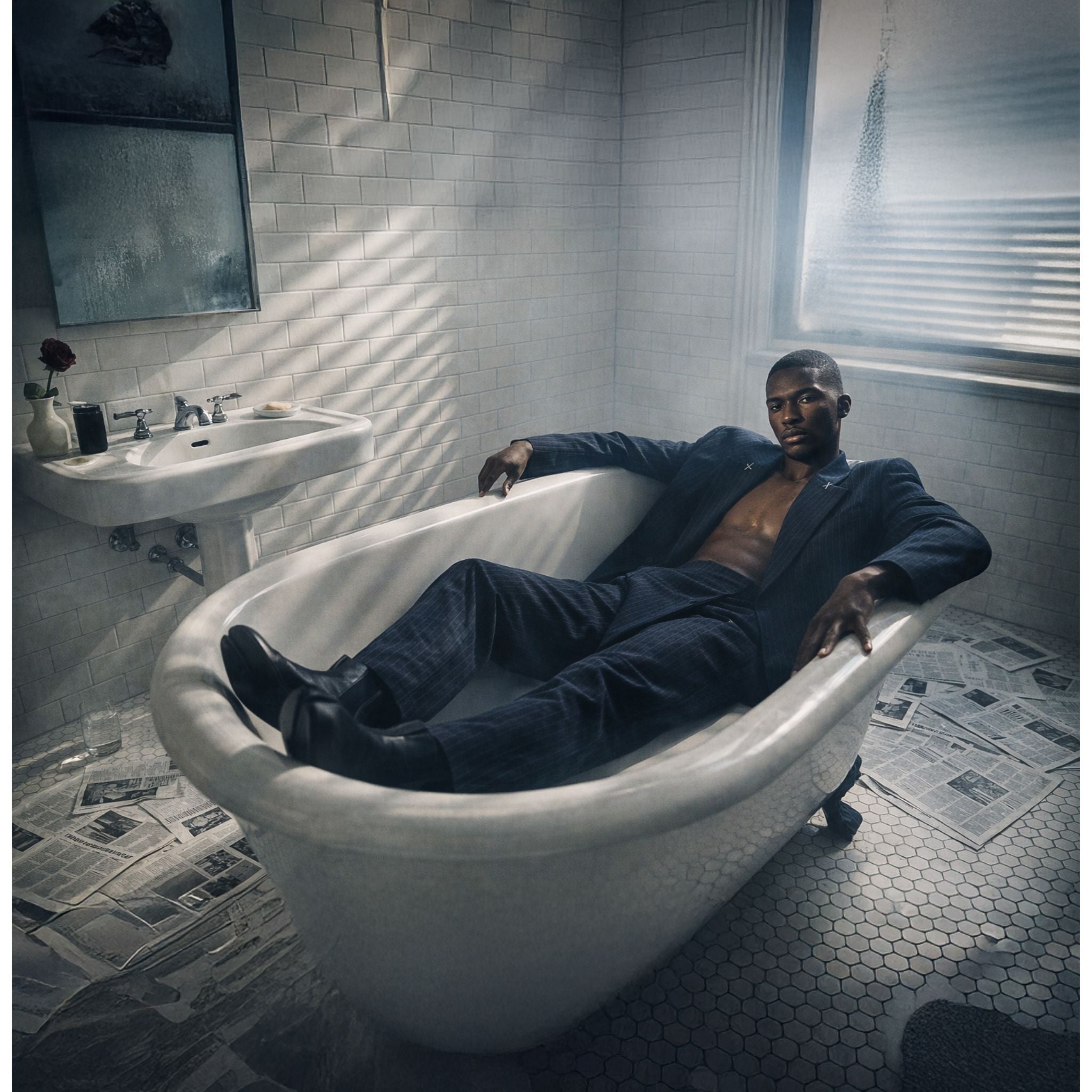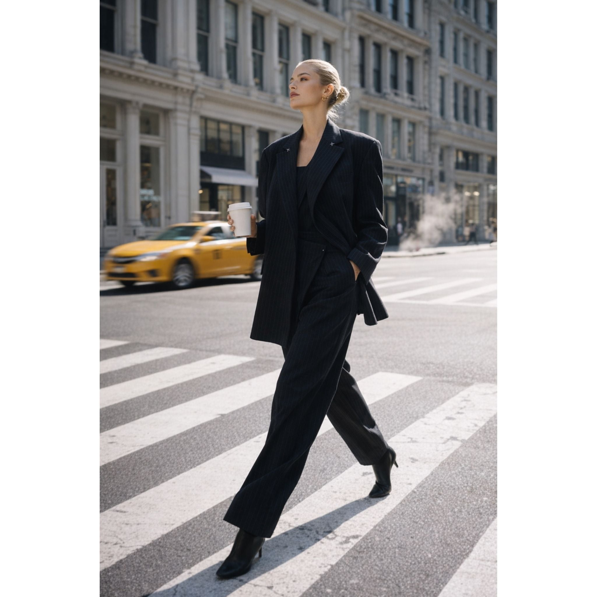 These unisex pinstripe trousers are a bold reimagining of classic tailoring, blending avant-garde geometry with effortless comfort. The standout feature is the striking asymmetric wrap-front design, which creates a modern, architectural silhouette at the waist. Secured with a single tonal button, the "zapah" closure adds dynamic layered detail that sets this piece apart from traditional office wear. Designed with a relaxed, wide-leg cut, these trousers offer a fluid drape that flatters all genders. The deep navy fabric with fine vertical pinstripes elongates the legs, while the clean back construction ensures a smooth, polished fit. This versatile piece balances the structure of formal suiting with the creative edge of high-fashion streetwear, making it a definitive staple for the contemporary wardrobe.