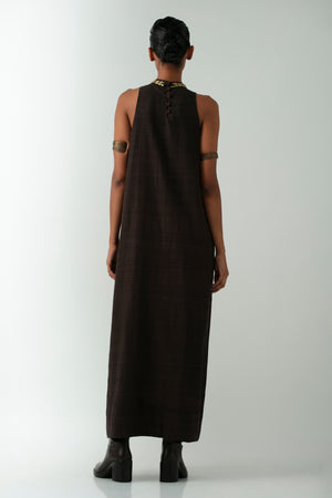 BOITO - Chocolate Brown Kotpad Halter Dress with Dhokra Beads | at DOORS NYC