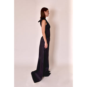 Half-skirt belt in black stretch taffeta. This dramatic piece adds volume and flair to any outfit, functioning as both a belt and a statement-making tail. Designed to fit two sizes, it adjusts effortlessly for a bold, elegant look. Made in Mexico, designed by Tania Orellana. You can play with the styling and wear it as a top, placing the belt part at the back and letting the skirt drape at the front.
