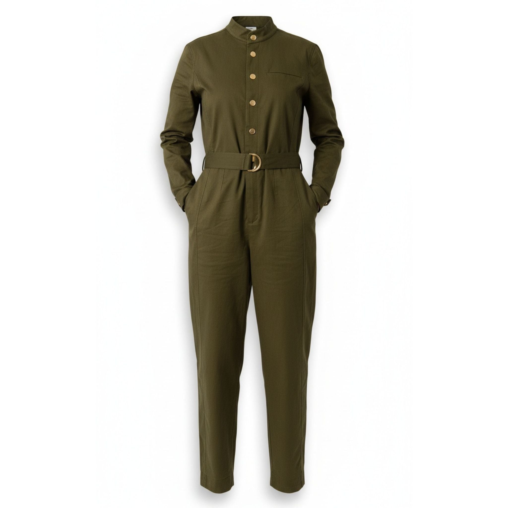 From early flights to late dinners, this jumpsuit flexes with your schedule—and your style. The high neckline and long sleeves keep it covered, while the tailored waist and durable fabric make it easy to move, layer, and repeat.