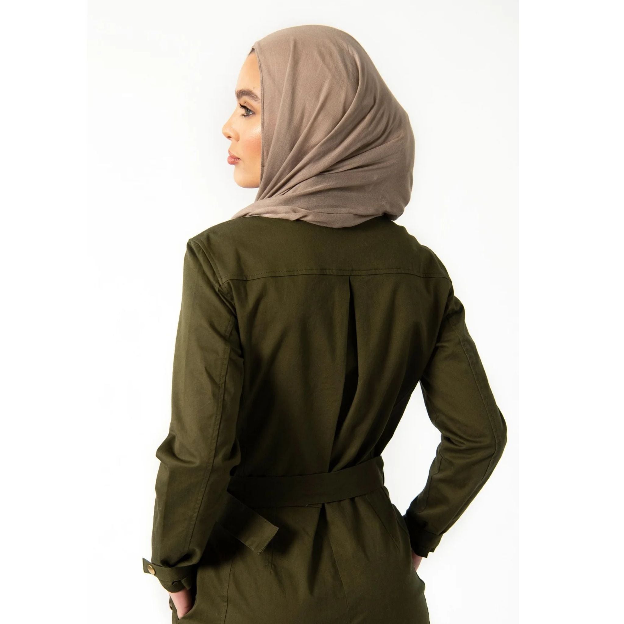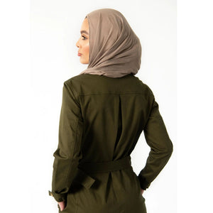 Designed for life in motion, The Vanguard Jumpsuit is a go-to for Sarah—the traveler, the busy mom, the woman who needs her wardrobe to multitask. With its clean lines, bold buttons, and structured fabric, it delivers a rugged-cool edge while staying polished and modest.