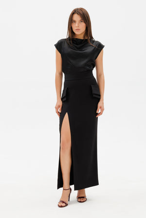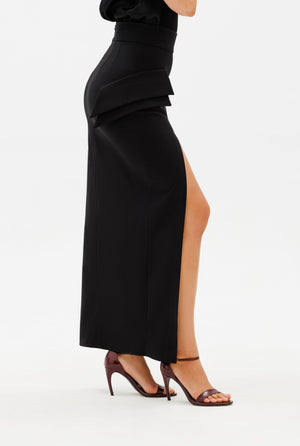 The Executive Skirt is a bestselling favorite, designed to enhance and flatter with its high waist, double-flap details, and elongating maxi length. Tailored for a sleek silhouette, it accentuates curves while offering warmth and comfort in premium fabric. Perfect for both professional settings and evening occasions, this versatile piece is the epitome of modern elegance.
