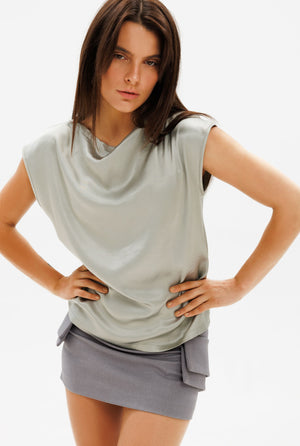 SELL WITH USThe Ocean Top is a refined essential with a sleek satin finish and a minimalist silhouette that gently highlights the shoulders. Designed for versatility, it strikes the perfect balance between understated elegance and modern strength—ideal for pairing with tailored trousers or layering under structured outerwear.