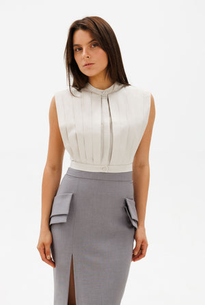 SELL WITH USThe Shellfish Top is a sculptural statement piece inspired by oceanic forms, featuring elevated shoulders and a structured waist for a bold, confident silhouette. Designed to be worn as a top or lightweight jacket, it blends artistic craftsmanship with refined tailoring. A true standout, it brings elegance and edge to any modern wardrobe.
