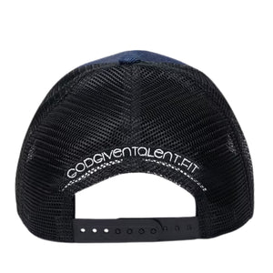 Timeless and bold, this 100% dark denim mesh snapback brings a refined edge to classic streetwear. Featuring breathable polyester side and rear panels, it’s finished with a crisp white God Given Talent logo for high-contrast impact. Complete with a retro-style adjustable snapback for a tailored fit and all-day comfort.