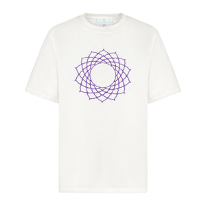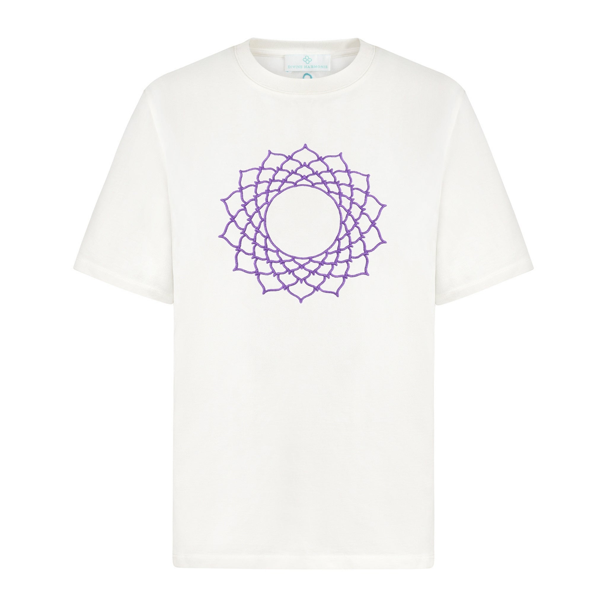 SELL WITH USThe Crown Chakra Unisex T-Shirt is made in Portugal from thick, ultra-soft 280g organic cotton jersey, offering both comfort and conscious design. Featuring a purple Crown Chakra symbol embroidered in biodegradable Tencel threads at the center front and the turquoise Divine Harmonie logo on the back, this piece supports spiritual connection, wisdom, and inner peace. It opens the gateway to universal consciousness, allowing you to receive pure light and divine energy with clarity and serenity.
