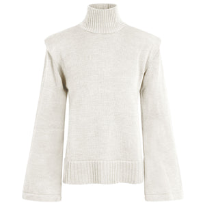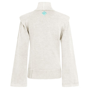 SELL WITH USMinimalist in aesthetic yet spiritually charged, the Divine Harmonie Turtleneck Sweater is crafted in France from 100% extra-fine merino wool. This ivory pullover balances form and function with architectural shoulder pads, dramatically flared sleeves, and a softly structured 9cm ribbed turtleneck. Designed to regulate heat and humidity naturally, the fabric is gentle enough for bare skin - ideal for layering or wearing solo on crisp autumn days.