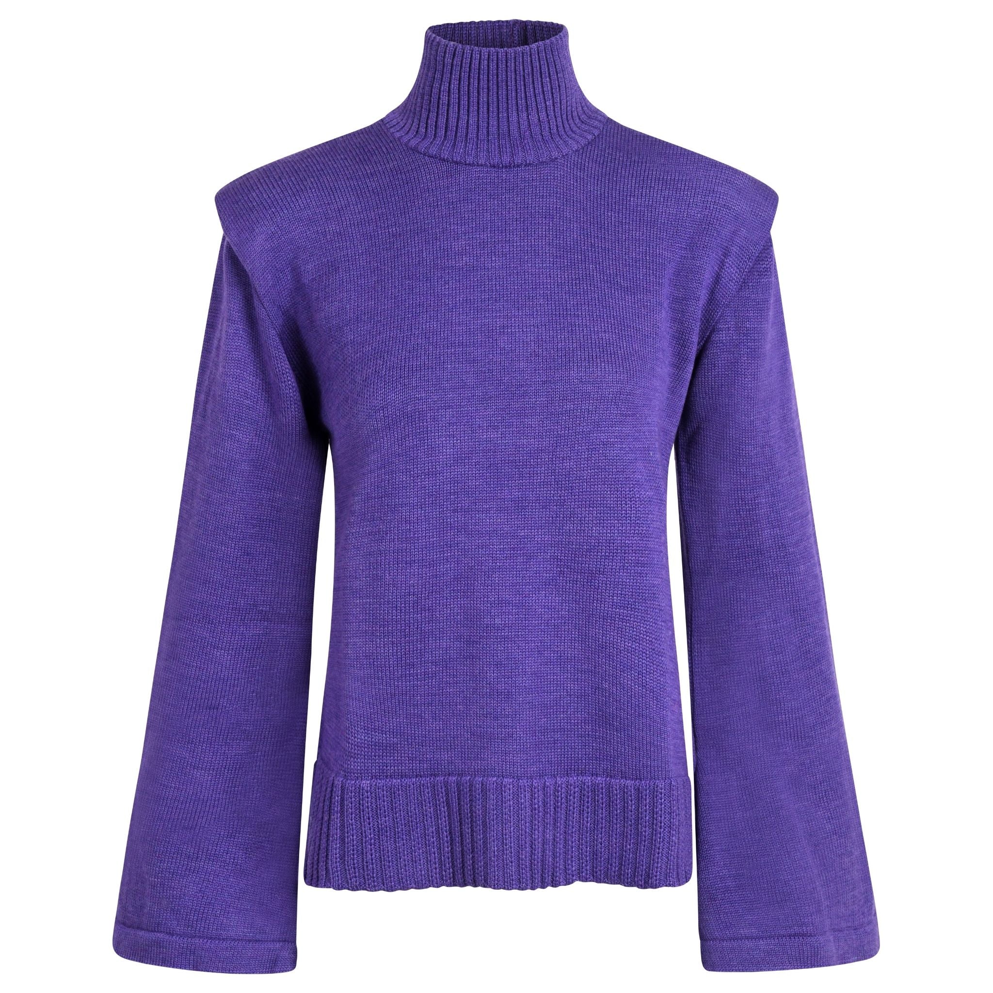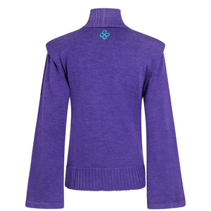 SELL WITH USChannel clarity and connection with the Crown Chakra Turtleneck Sweater by Divine Harmonie. Crafted in France from 100% extra-fine merino wool, this violet-hued pullover symbolizes spiritual alignment and conscious luxury. Its sculptural silhouette is defined by exaggerated flared sleeves, bold shoulder pads, and a wide 9cm ribbed turtleneck - melding modern minimalism with holistic design.