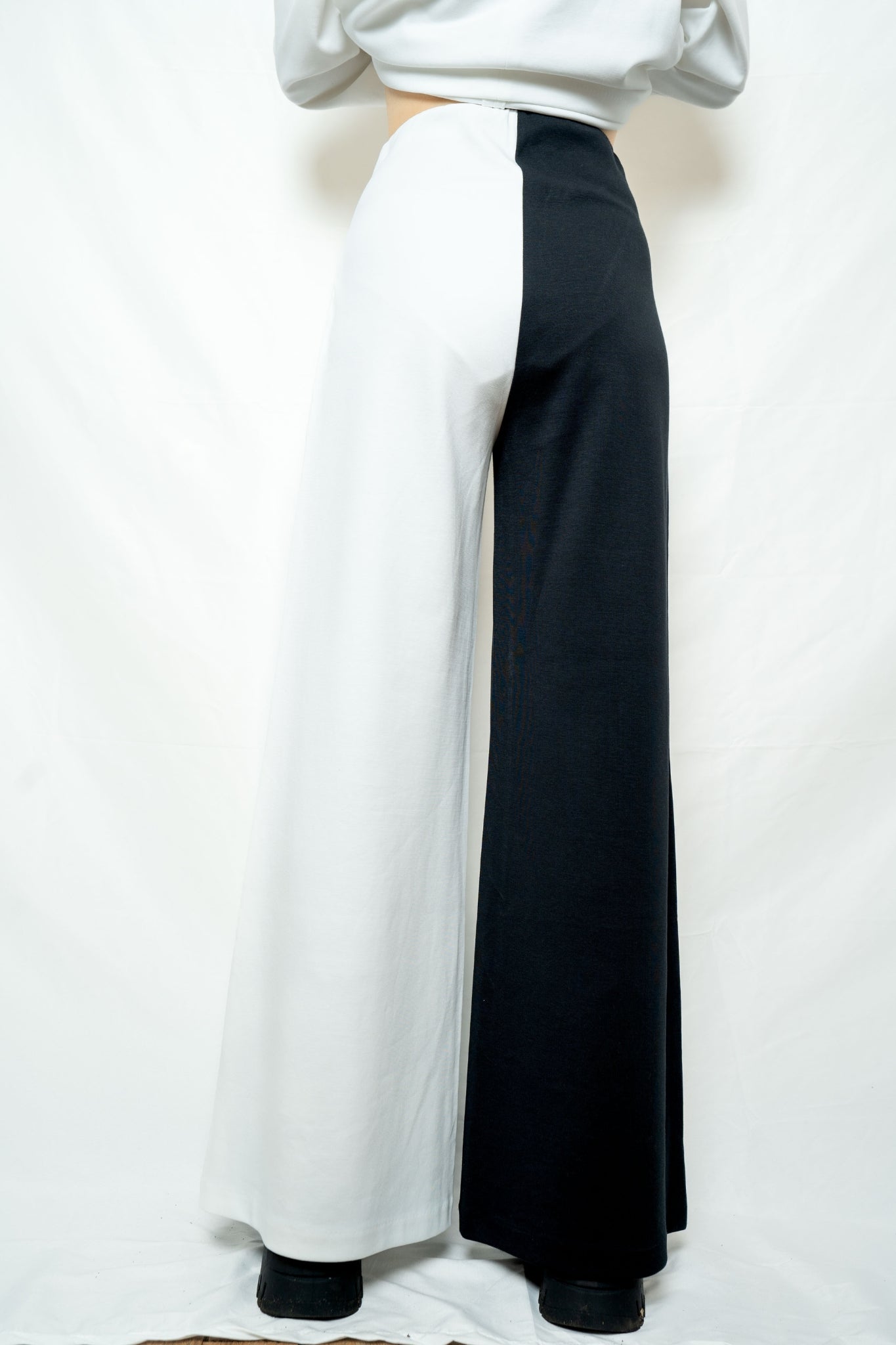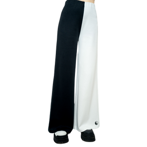 SELL WITH USThe Yin & Yang Two-Tone Wide-Leg Pants combine bold design with mindful comfort. Crafted in Portugal from thick, ultra-soft 100% organic cotton interlock, these black and white pants feature a relaxed wide-leg silhouette and a discreet 7.9" invisible side zip for a seamless fit. The iconic Yin & Yang symbol, embroidered in biodegradable Tencel threads at the hem, represents the balance of feminine and masculine energies—bringing harmony and intention to your everyday style.