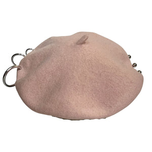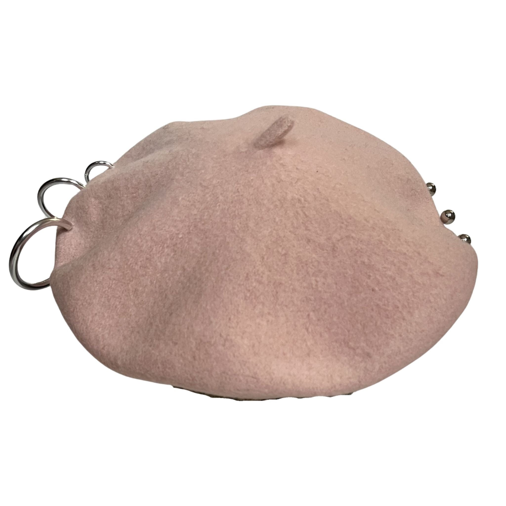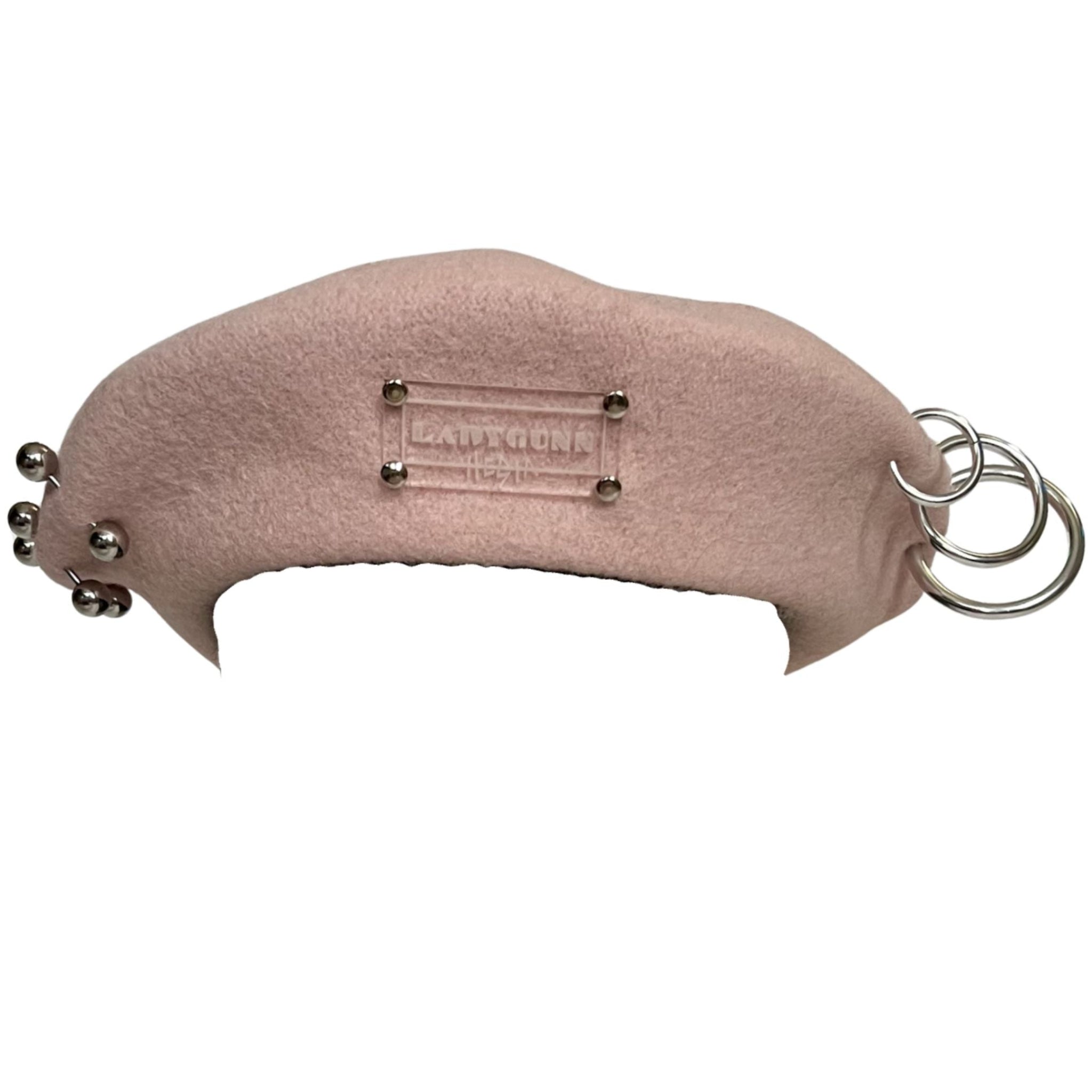 The Hesta Beret by HESTAVERSE x LADYGUNN reimagines a classic silhouette with a sharp, subversive edge. Crafted in structured pink fabric, this modern beret is detailed with silver-tone metal rings and stud accents, balanced by a signature collaboration plaque at the front. The sculpted shape hugs the head while maintaining architectural structure - minimalist at first glance, rebellious up close. Part of the limited DOORS x LADYGUNN NYFW drop.