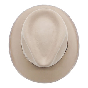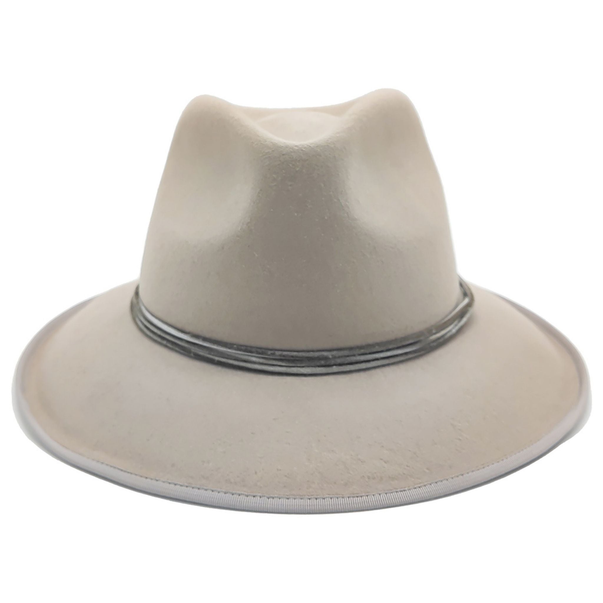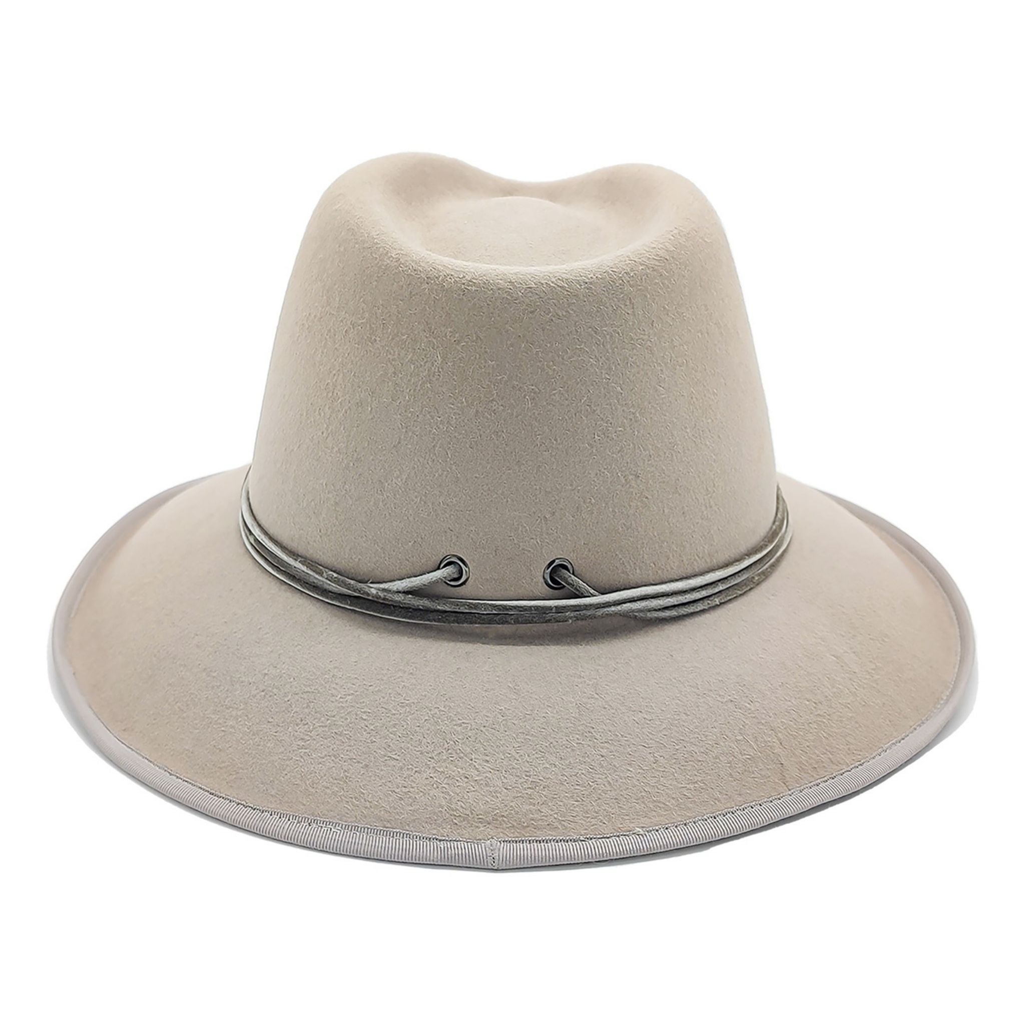 SELL WITH USOur Jesse is a Western-style Drop hat made of smooth lapin felt. An interpretation of early cowboy headgear, in an authentic Doria perspective. Shaped brim with subtle side lapels. Matching grosgrain border and brushed leather lace to adorn the cap in a mix of cool sand color tones. A now iconic garment with its casual style but elegant proportions.