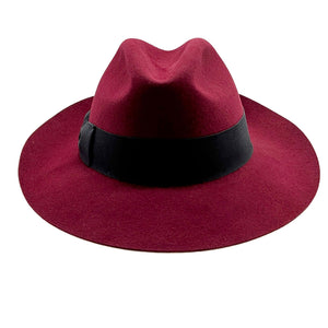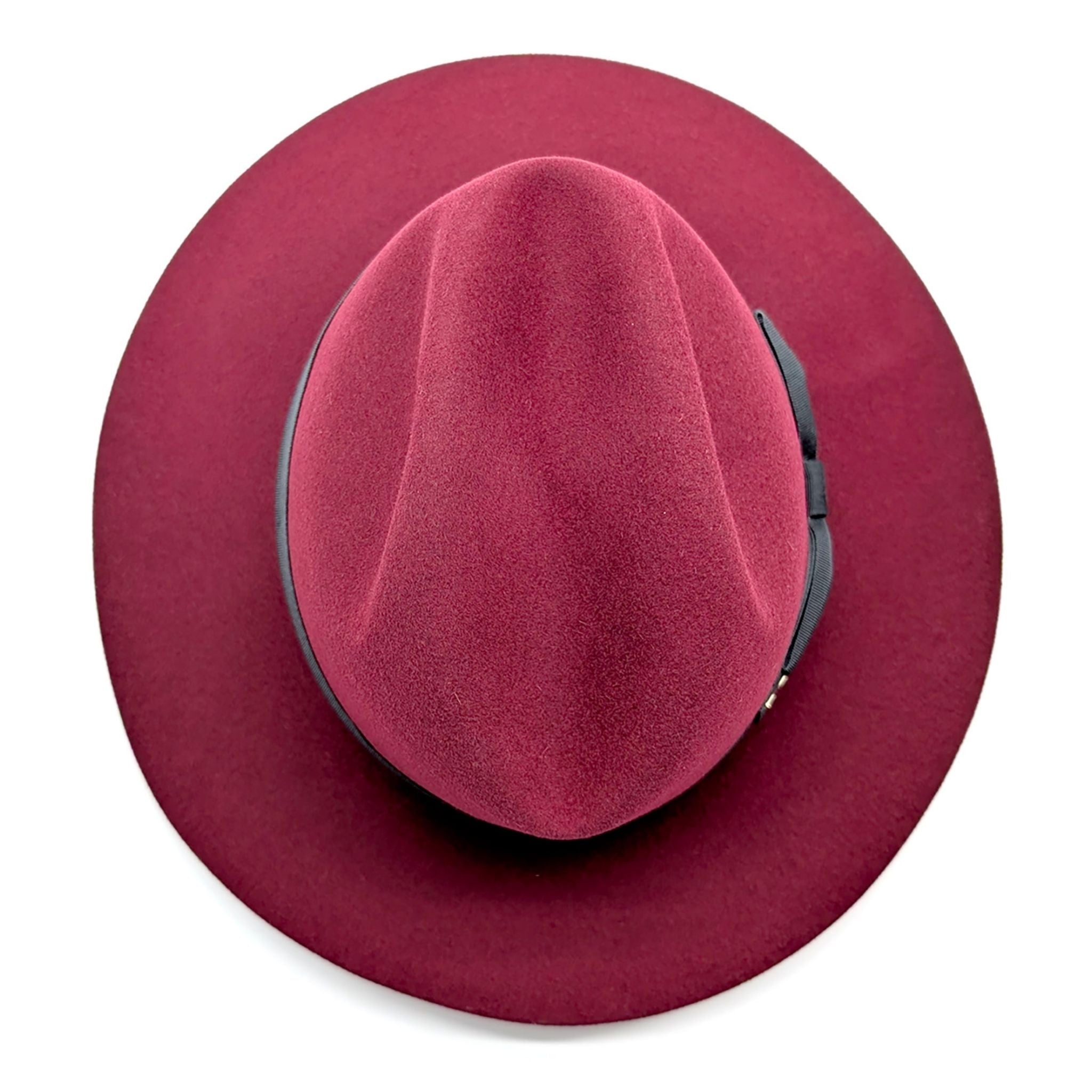 SELL WITH USOur Dalida is a Fedora hat made of smooth lapin felt in a clincher-red color that combines elegance and sophistication: its classic shape is enhanced by a charcoal-colored grosgrain band and a Doria bow with a gold brass logo, details that enhance the quality of craftsmanship. Soft and lightweight, it provides comfort and distinctive style, ideal for those seeking a sophisticated and durable accessory.