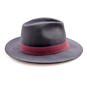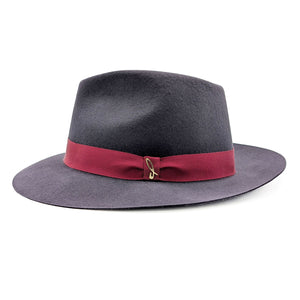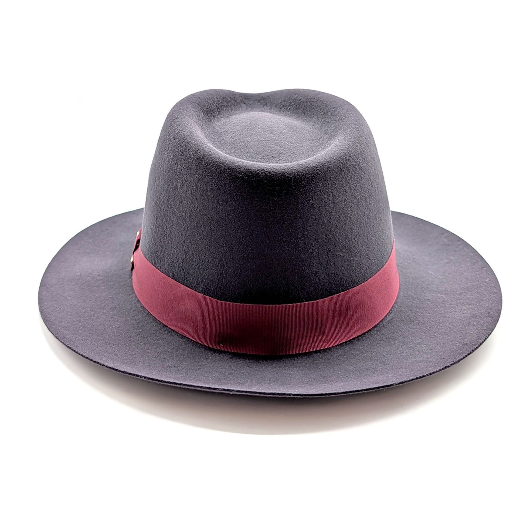 SELL WITH USOur Drop is a winter hat that combines elegance and functionality, made of fine Smooth lapin felt in a deep storm gray. The medium brim provides the perfect balance of protection and style, while the red grosgrain belt, embellished with the gold brass Doria logo, make it original with a detail of color.