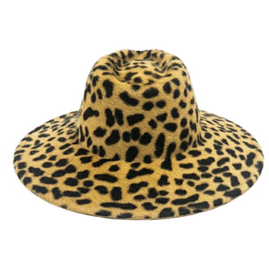 SELL WITH USThis women's wide-brimmed hat, made of fine lapin felt with a melousine finishing, combines softness and durability in an elegant design. The leopard pattern adds a distinctive and contemporary touch, perfect for those seeking a sophisticated and characterful accessory.
