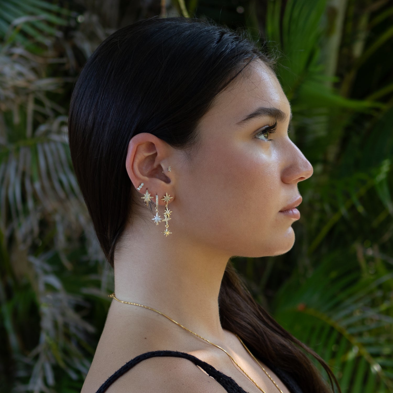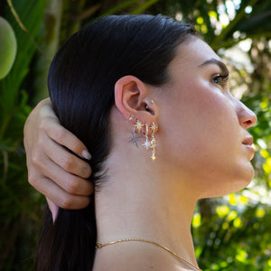 A curated set of three star-shaped earrings in varying sizes. Designed to be worn together on one ear for a "climbing" constellation effect or split between ears for a balanced, celestial look.