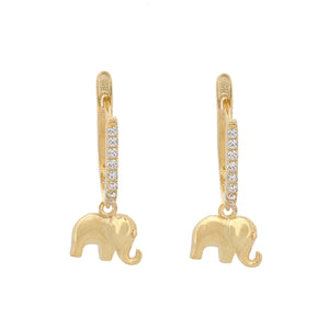 Features a petite hinged "huggie" hoop that sits close to the earlobe. The elephant charm is delicate and lightweight, designed for comfortable all-day wear.