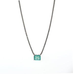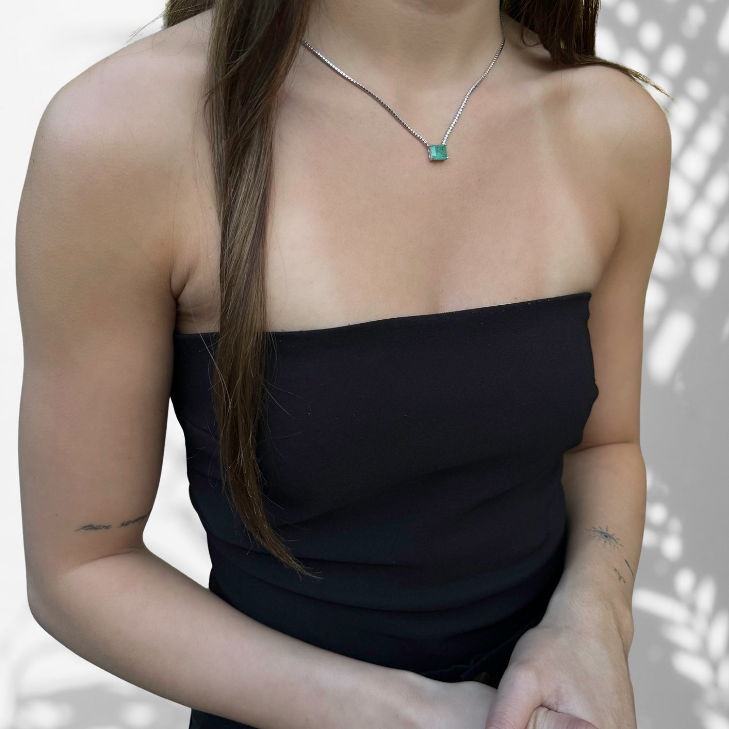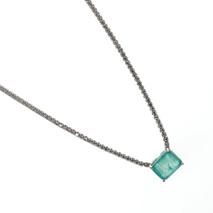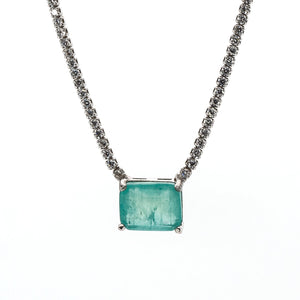 SELL WITH USSquare Paraiba Tourmaline Diamond Chain Happy Necklace features a vivid blue-green Paraiba Tourmaline pendant on a sterling silver CZ diamond tennis chain. Symbolizes joy and positivity.