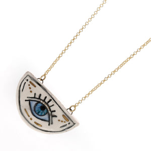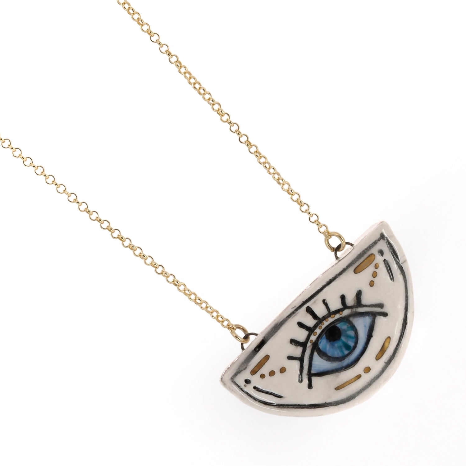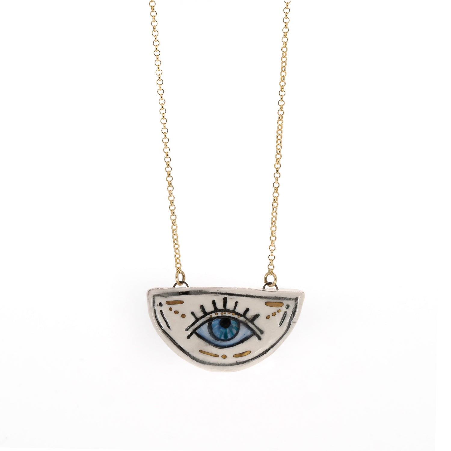 Composition: 18K Gold plated on Sterling Silver chain. Hand-paint Ceramic pendant